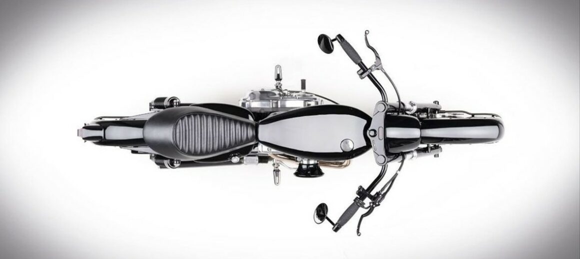 Mais c’est Monsieur Guillaume Radomski (chapeau bas, courbettes et salutations déférentes, légion d’honneur, félicitations et vivas-hourrahs), qui a orchestré le processus de transformation du début à la fin. Comme vous pouvez le constater, le résultat final est très créatif et mérite une minute de silence suivie d’un tonnerre d’applaudissements. S’inspirant de l’art déco, des anciennes motos café-racer au parfum nostalgique, Guillaume a réussi à créer une merveille. La base est une Harley Davidson XLH1200 de 1998, et 1.400 heures de travail pour créer cet éblouissant one-off. Le projet a été achevé en 2022, quatre ans après que son auteur ait réalisé les premières esquisses.