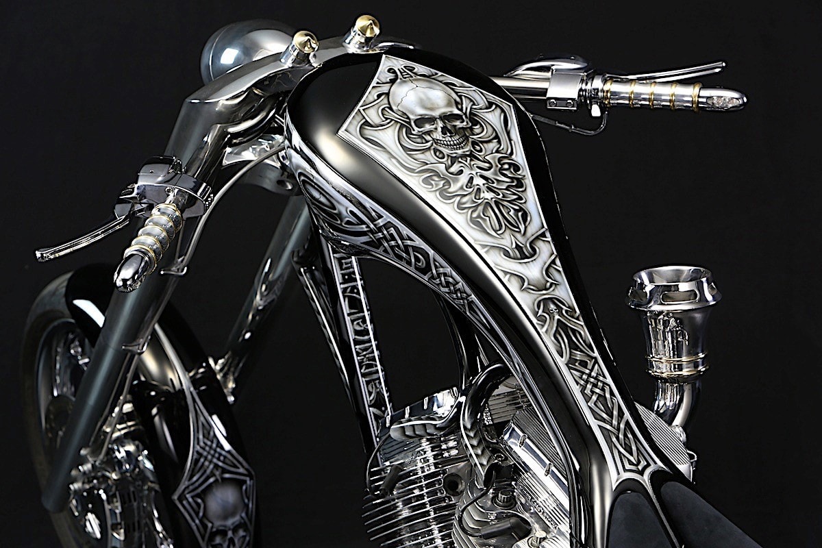 Mais aucun cadre Harley, jamais, n’a ressemblé à ça, aucun moteur né à Milwaukee n’a “S & S” écrit dessus… et rien d’évolutif à partir d’une moto de stock n’arrive à ressembler à ça. Le Chopper Canopus a été présenté par “Bad Land Chopper” pour la première fois en 2013, à l’époque où l’atelier était encore relativement récent (bien que la moto soit leur projet numéro 71). Il est surtout connu sous son premier nom de “Custom Monsters”.