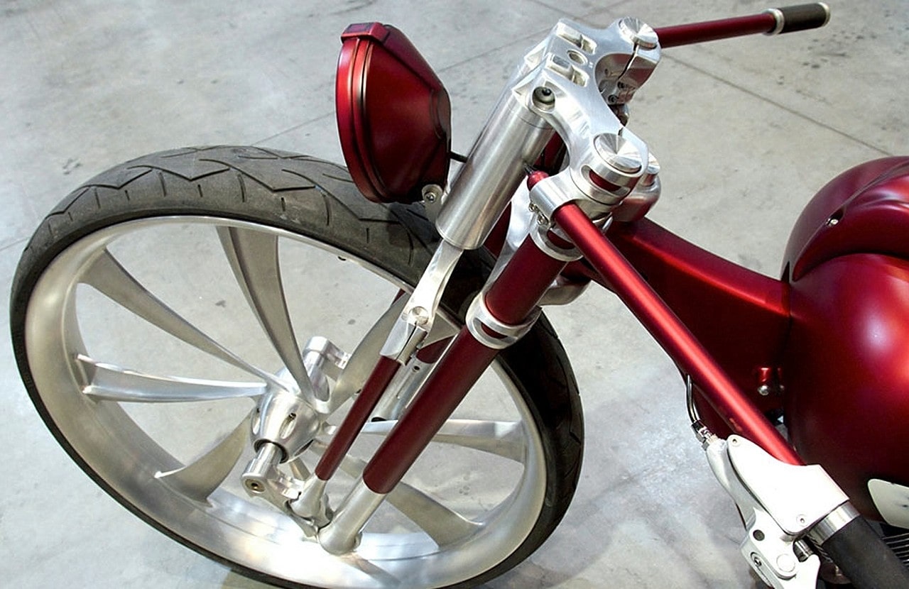 – “Nous créons et fabriquons les motos et les pièces les plus avancées dans l’industrie des choppers. Nous pouvons vraiment dire que nous sommes un leader de l’industrie dans la technologie et la tendance des motos sur mesure. Beaucoup de nos pièces sont “brevetées”. Nos clients peuvent monter leur moto avec confiance. Chaque pièce que “Misfit industries” fabrique est garantie à vie”…, m’a dit Chris Eder…