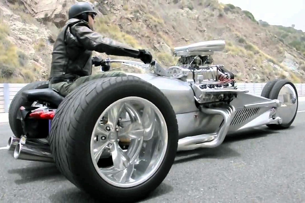 Elles se différencient des deux-roues par une boite à trois vitesses et une marche arrière, ainsi qu’une transmission par cardan avec blocage de différentiel. Au guidon, l’humilité est votre meilleure ceinture de sécurité. Le bruit du V8 est absolument envoûtant, et il accélère très fort (0 à 100 km/h en moins de 3 secondes). La position de conduite implique des jambes très écartées. Plus gênante est la chaleur du moteur. En réalité seuls vos mollets seront brûlés au 2ème degré. En ville et en été, n’oubliez pas la sauce barbecue. Lorsque l’on aborde le couple de renversement, les sueurs froides apparaissent. A l’arrêt, il impose les deux pieds au sol au moindre coup d’accélérateur sous peine de recevoir l’engin sur une jambe. Pour accélérer, vous prenez moult précautions, car la Boss Hoss possède une boîte de vitesse semi-automatique à prise directe, dont nous devons le principe à Louis Renault en 1898.