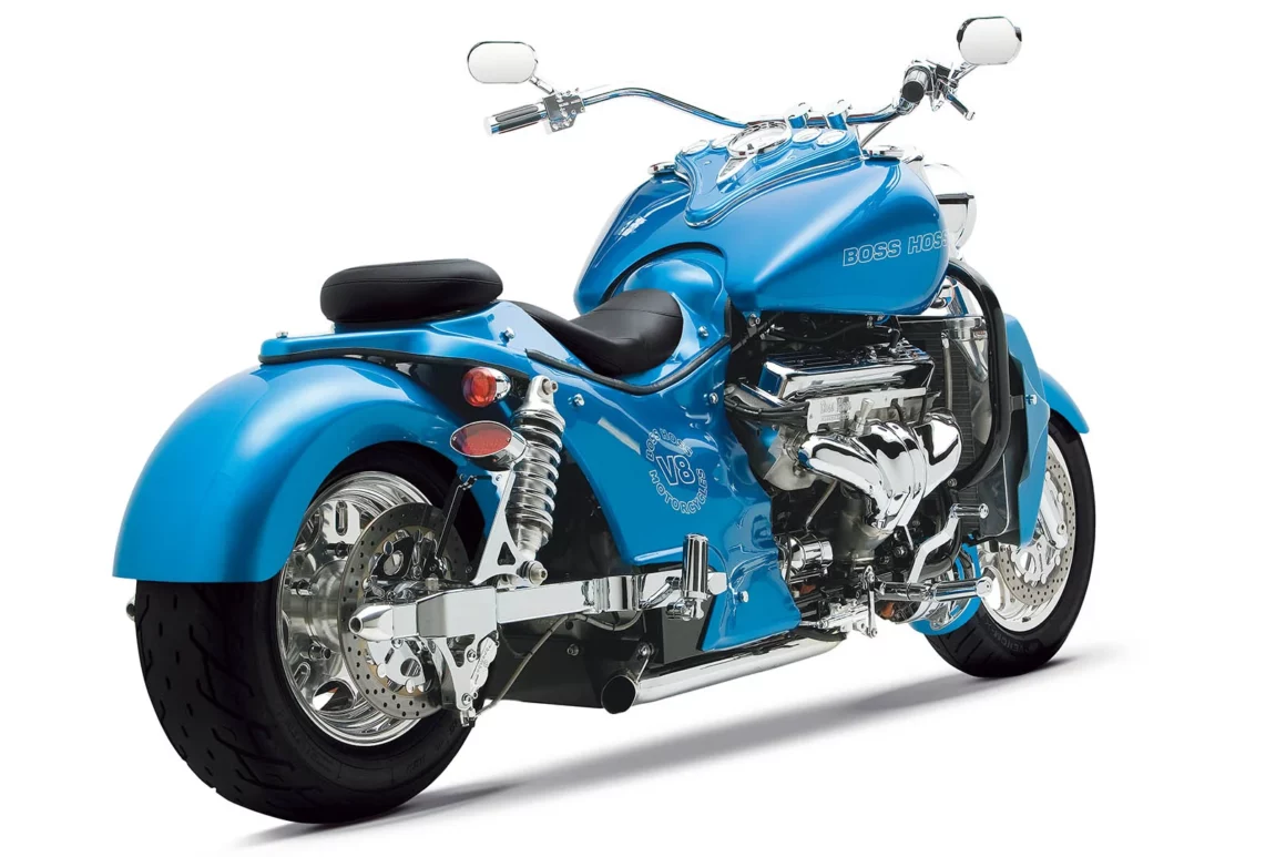 Le couple de renversement de la Boss Hoss solo, son équilibre lors des manœuvres, sa transmission avec overdrive un peu shadok, tout ceci lui confère un côté effrayant. Vendu au prix d’une Rolls d’occasion récente et au même prix qu’une Corvette neuve (celle à moteur central) et disponible avec plusieurs types d’arrières, façon Chevrolet Corvette ou bien pick-up truck, ou encore Hot Rod Chevrolet ’57, la Boss Hoss avec son bloc 6.2 (445 ch) est hyper crazy… bourré d’inconvénients. À bas le conformisme : la vie est trop courte pour rouler triste ! Voilà, c’est terminé !