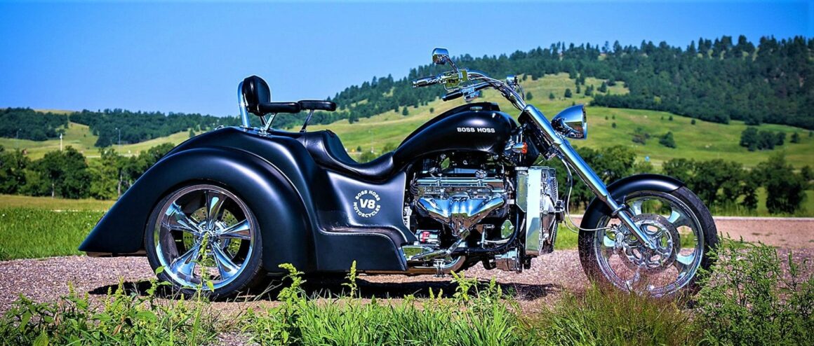Une Boss Hoss, c’est un peu comme une voiture électrique, lorsqu’on part en vacances itinérantes, il faut d’abord repérer les stations à essence. En revanche, ce réservoir accueille les indicateurs de température d’eau, d’huile, de vitesse, de régime moteur et de charge de la batterie. Concernant notre belle Gaule-Franchouille, on peut y acquérir une Boss Hoss depuis le mois d’octobre 2012, cela relève de l’ineptie car elles sont bridées à 100 chevaux par la réglementation française. Tout cela est rendu possible grâce à la société importatrice « Boss Hoss Cycles France », dirigée par Olivier Moussard, le patron de la société « American Bikes, Customs and Cars » (https://www.americanbikescustomandcars.com/). Dans la catégorie des Trikes, l’offre est triple puisque l’on peut rouler sur un Gangsta, un coupé ou un Chevy. Ces trois machines présentent quasiment les mêmes caractéristiques moteurs et parties cycles.