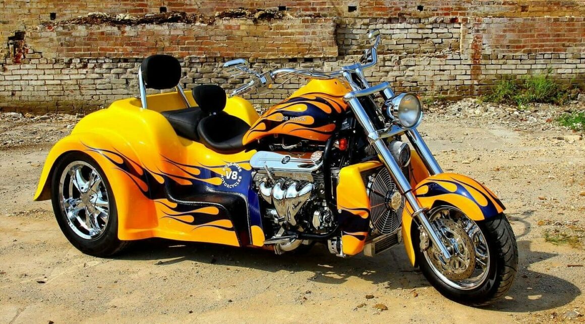 Ayant créé en première mondiale début des années ’80, un Trike “Super Flammes“ motorisé d’un V12, je ne peux que me branler de bonheur en constatant que presque un demi siècle après “cet exploit” contre nature, les Trike’s (mais équipés d’un V8, pas d’un V12) sont devenus un business très rentable principalement orchestré de manière plus consumériste que viscérale par Boss Hoss. C’est simple, le V8 en récupération de 5,7 litres attire les Bikers-Customeux qui déboulent pour acheter, convaincus qu’ils vont jouir avec ce monstre de la route commercialement absent d’un marché ne proposant aucun modèle susceptible de satisfaire une telle dérive. C’est le schéma d’attaque qui n’est qu’un paradoxe cultivé par Boss Hoss ! En effet, si les caractéristiques hors normes de ses modèles ont fait connaître la marque, elles ont en revanche limité le champ commercial qui était surestimé.