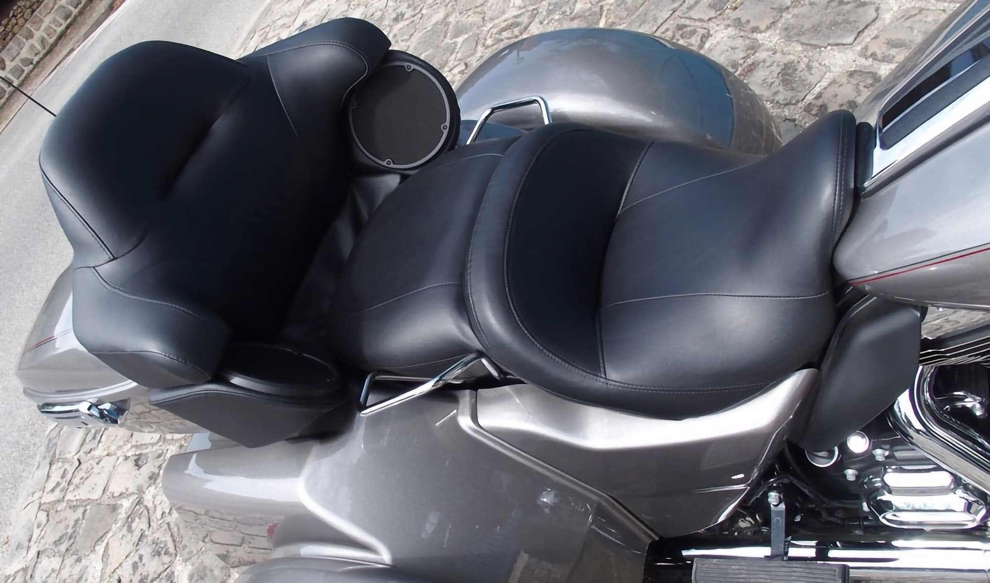Sur route défoncée, ça secoue sérieusement, au point de devoir réduire éventuellement la vitesse, ne serait-ce que pour préserver la passagère… L’avantage de ces “Servi-car-usine”, c’est que leur géométrie a été calculée de manière optimale. Certains fabricants “after market” qui collent des essieux sur l’arrière d’une moto (il y a plusieurs acteurs sur le marché, qui transforment principalement de la Harley, de la GoldWing et du custom japonais) n’ont pas forcément les moyens d’aller aussi loin dans le détail. C’est ainsi que sur le Tri Glide, Harley-Davidson a aussi modifié la fourche avant, qui dispose dans les deux cas d’un angle de chasse de 26°, mais d’une chasse de 170 mm sur une Electra Glide Ultra Classic, réduite à 100 mm sur la Tri Glide, qui fait également appel à une roue de 16 pouces avant, là où une Electra Glide est en 17.