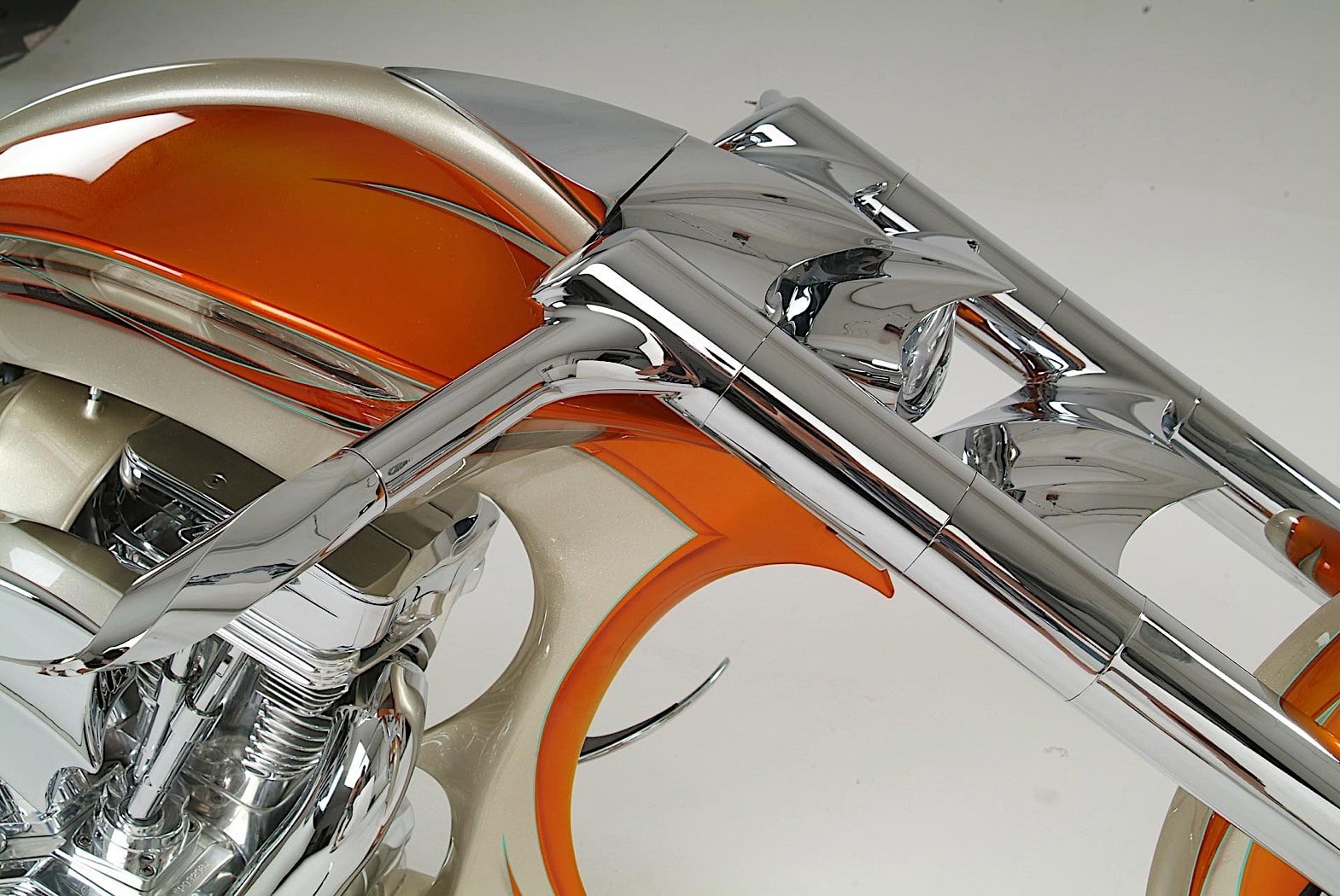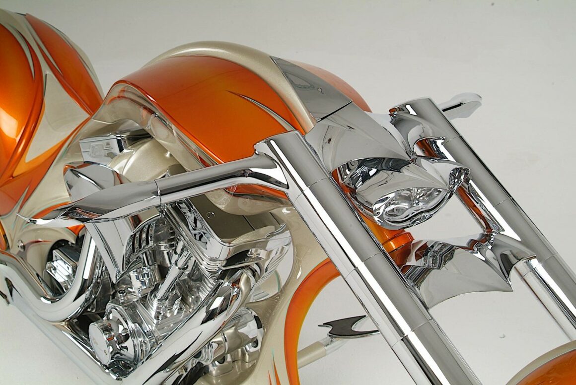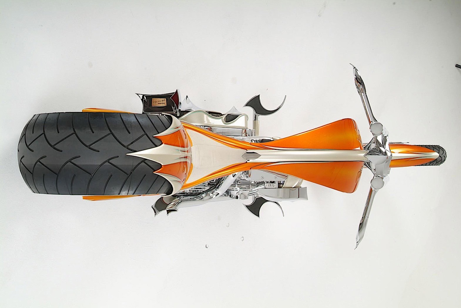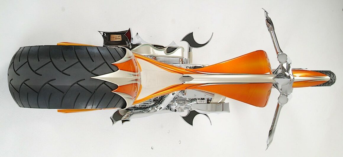 Construire des Chopper’s est pour elle un art qui se situe à l’intersection entre la réalité et le numérique, là où les frontières s’estompent et où de nouveaux mondes émergent. Il ne s’agit donc pas pour elle de seulement relier tradition et modernité, mais de créer des visions qui évoquent des émotions. Son style reflète selon elle cette dualité : le tangible du monde réel rencontrant l’intangible du numérique. Et c’est ce qui rendrait son art unique. Vous me connaissez dubitatif et en ce cas ce n’est que parce qu’elle crée des Choppers et s’essaie également dans les Kustom’s traditionnels que mon esprit de réparties acerbes est temporairement ankylosé, d’autant que les thèmes et contrastes qu’elle présente explorer dans son œuvre, soulèvent inévitablement la question de savoir d’où elle tire son inspiration…