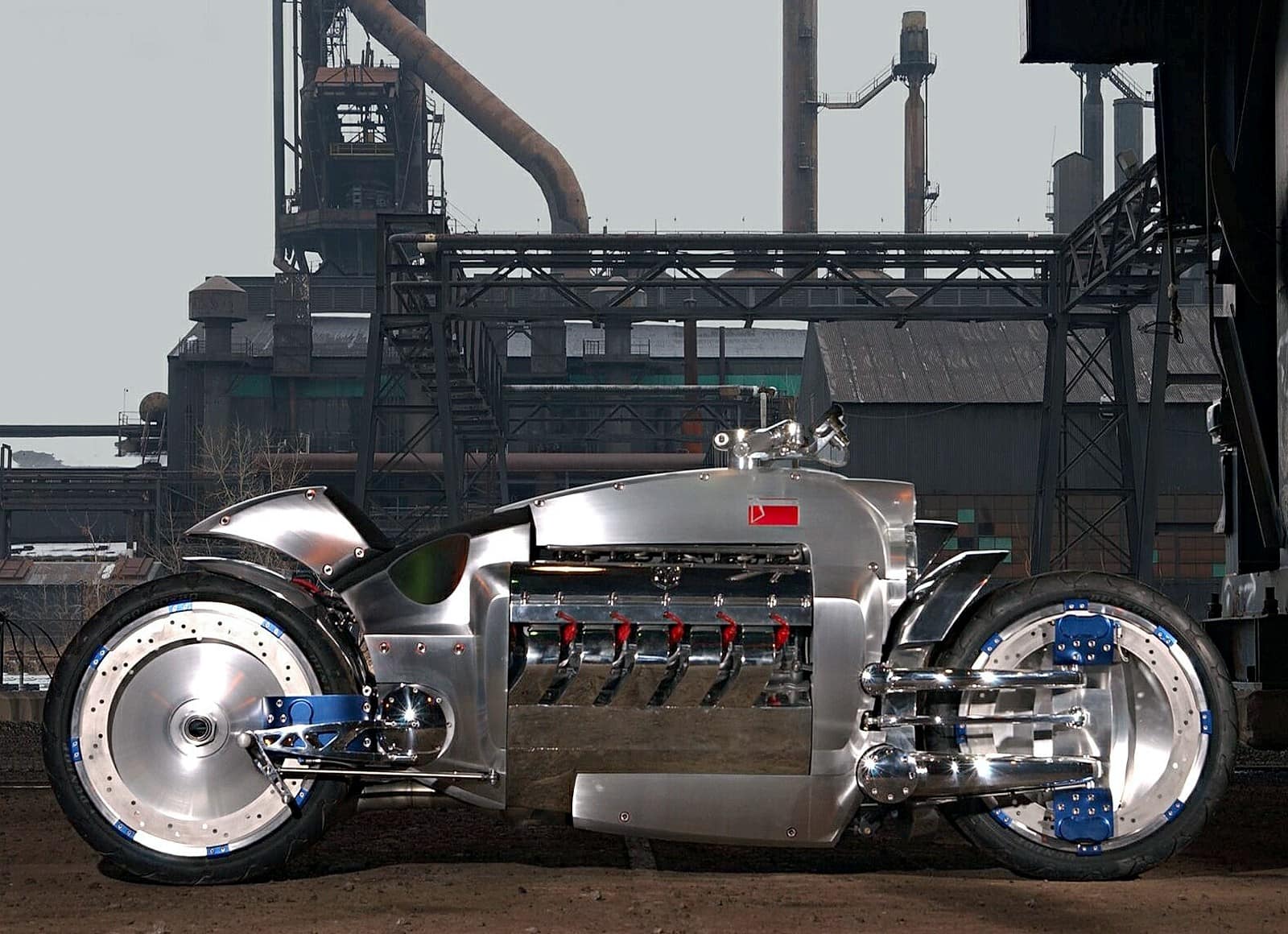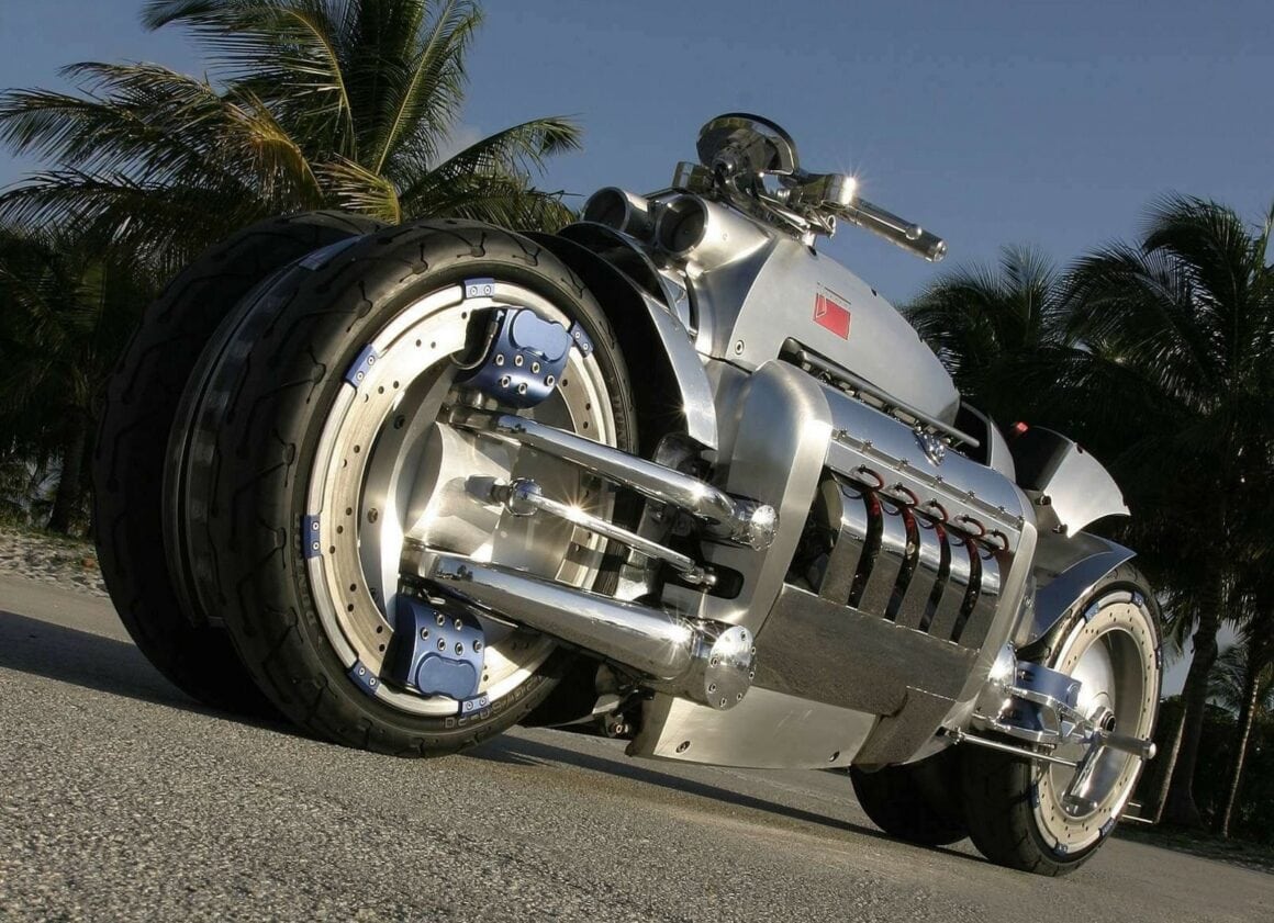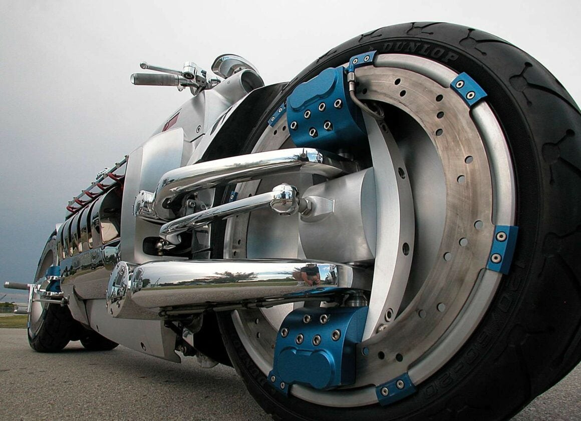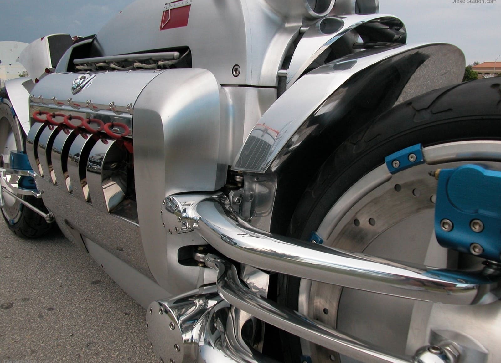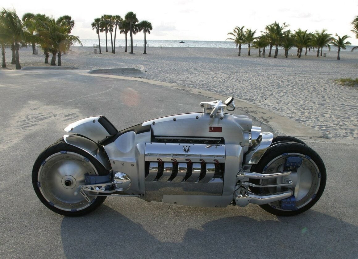 Est-ce vraiment une moto ? Difficile à dire. Ce qui comptait avant tout, c’était sa motorisation. Sur ce plan, c’était simple : le délire absolu, quitte à faire un show-bike de fou, autant y mettre un moteur de maboul. Et l’heureux élu n’était autre que le V10 de la Dodge Viper, un gigantesque moulbif culbuté dépassant les 8 litres de cylindrée. Avec sa puissance, la moto était théoriquement capable de dézinguer un avion de chasse au démarrage.