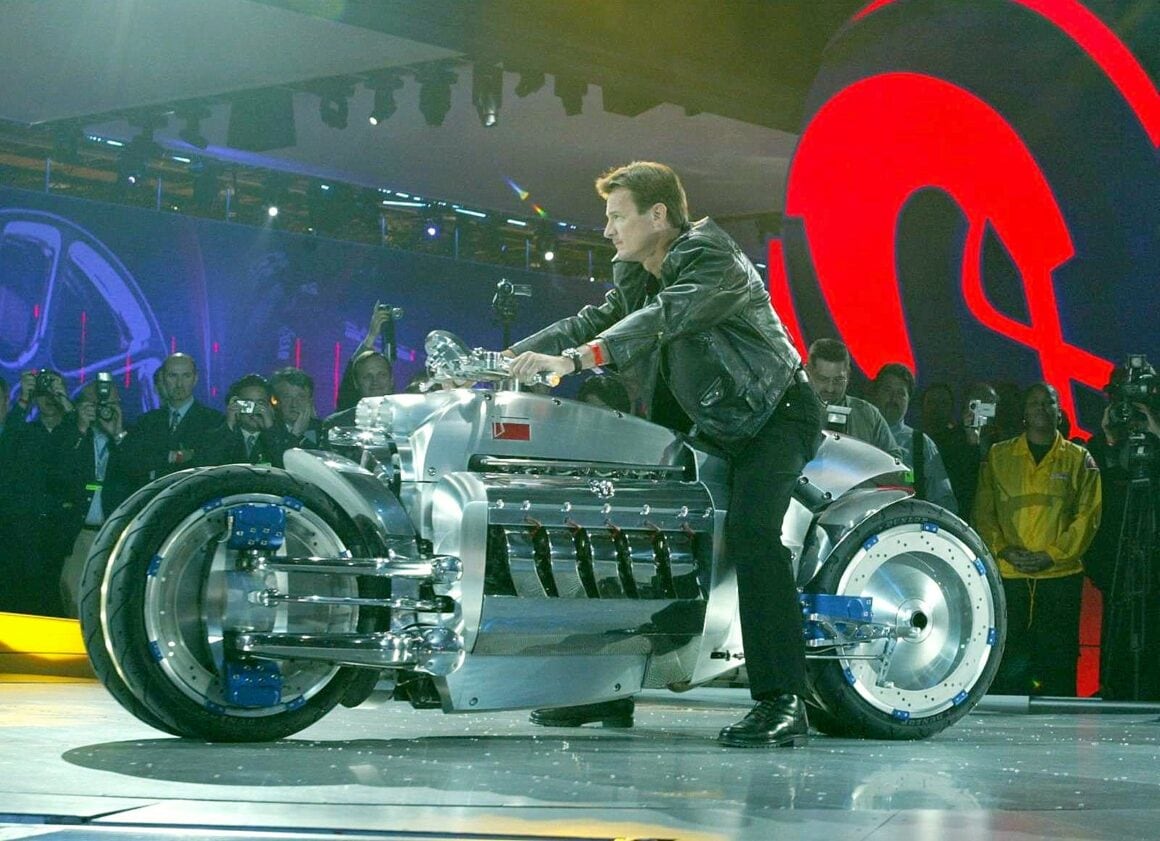 Passé le coté sensationnel, on reconnaissait avoir affaire à un concept très travaillé qui pouvait se déplacer et rouler avec prudence et pas seulement surprendre. Le plus incroyable dans tout ça, c’est que cette moto atypique (à roues AV et AR jumelées) pouvaitt prendre de l’angle. Le constructeur américain Dodge affirmait vouloir créer une petite série pour satisfaire les passionnés d’engin surréalistes. Outre le prix qui la réservait à une élite financière, et qu’il était peu probable que cette machine soit un jour homologuée sur route, strictement personne ne s’est manifesté !