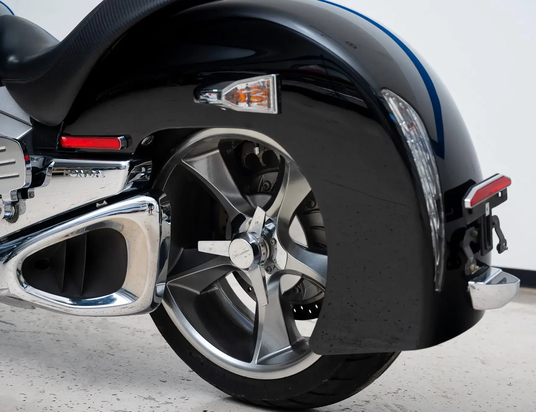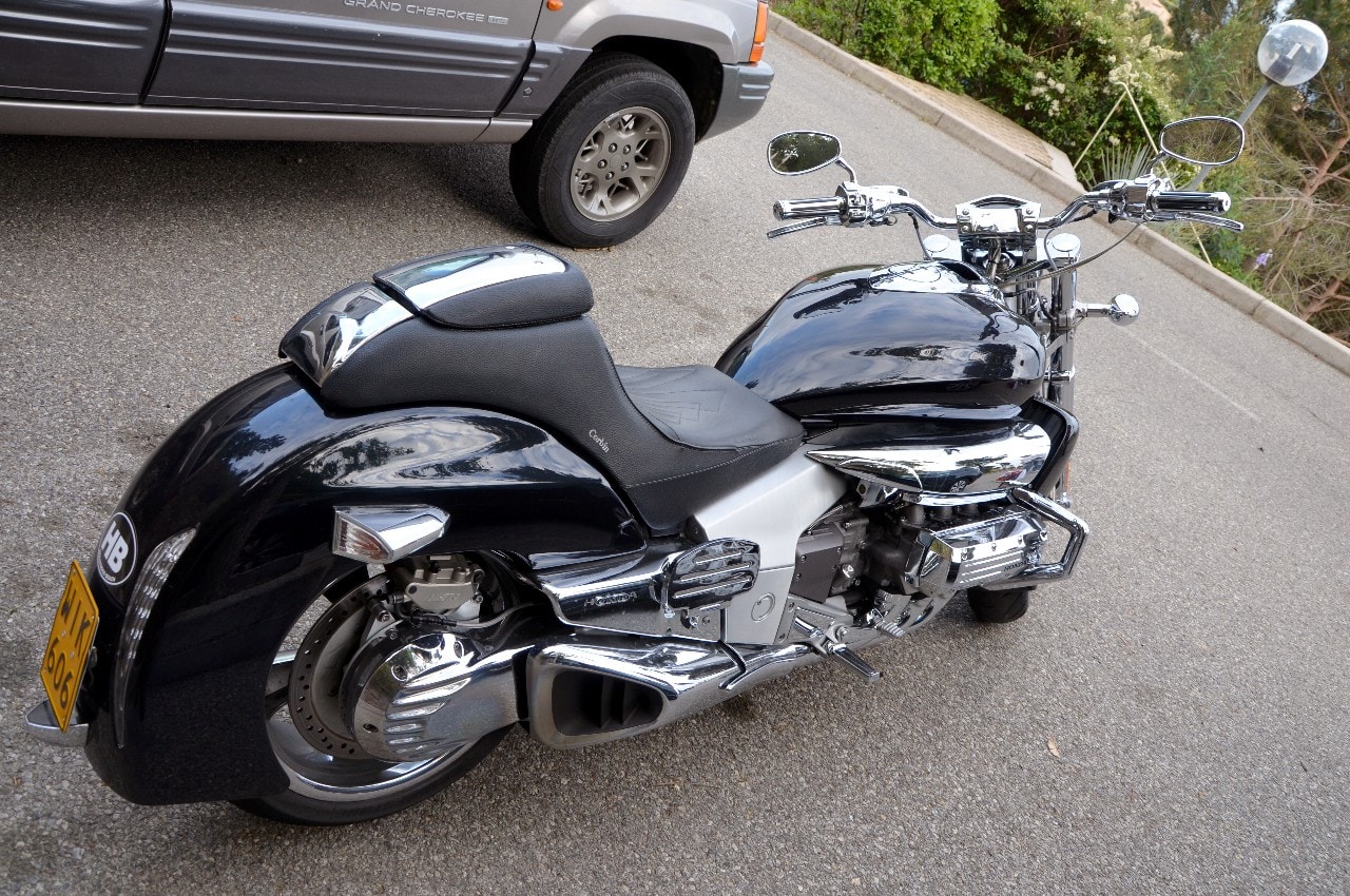 Rien à redire sur sa finition, on se trouve là en présence d’un produit très haut de gamme, d’une série ultra limitée…, certains éléments de style semblent tout droit sortis d’un cartoon américain des années ’40, d’autres rappellent l’ère des Muscle-Cars ou encore des Hot-Rods…, aucun doute, une telle machine n’a pas pu être dessinée ailleurs qu’en Amérique. L’idée de base est issue de l’esprit fertile de Ray Blank, grand patron du secteur moto de Honda USA, qui a demandé à son équipe de designers d’imaginer une série de motos reprenant le look de la Zodia, tout en étant motorisées par l’énorme bloc moteur flat six de la GL 1800.