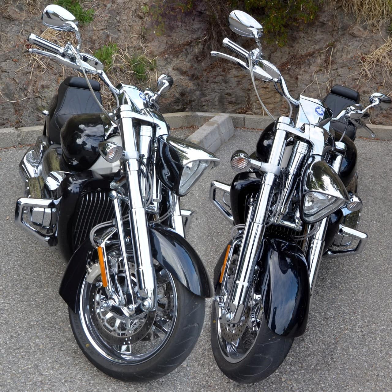 Cette machine ne laisse personne insensible, comme on le clamait durant les Sixties : “You meet the nicest people on a Honda”…, mais il est vrai qu’avec ce monstre de chrome et d’acier, on rencontre encore plus de gens sympas, qui lèvent le pouce en signe d’encouragement ou d’admiration béate…, on remarque aussi que le porte-avions USS-Rune n’a plus rien d’un monstre nautique une fois lancé sur les routes. La moto se comporte admirablement bien dans les courbes, non seulement en raison de son système de suspension avant bien pensé, mais aussi grâce au choix des pneumatiques Dunlop D251 de série…, le freinage se montre lui aussi à la hauteur, à condition de faire quand même appel au levier avant lors d’arrêts intempestifs à haute vitesse, plutôt que de se reposer uniquement sur le double action intégral, que l’on réserve plutôt à un usage urbain.