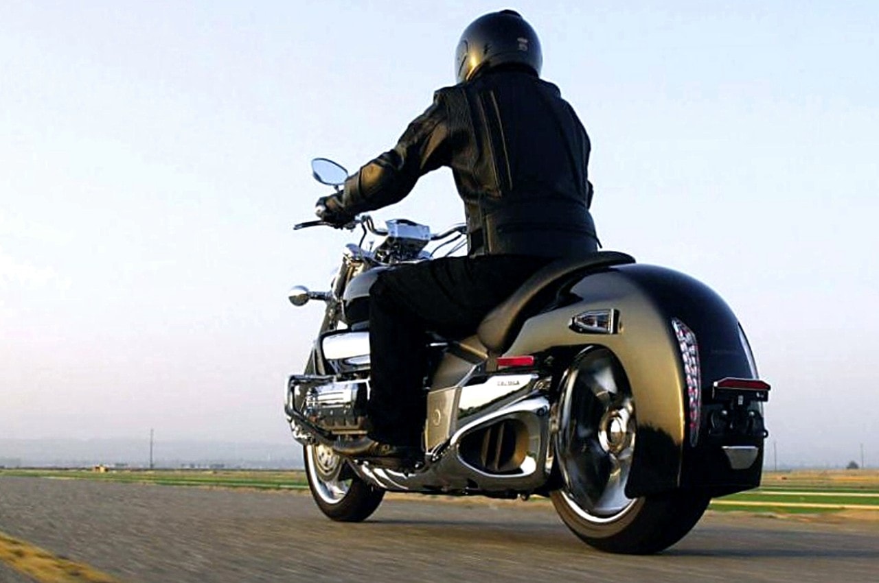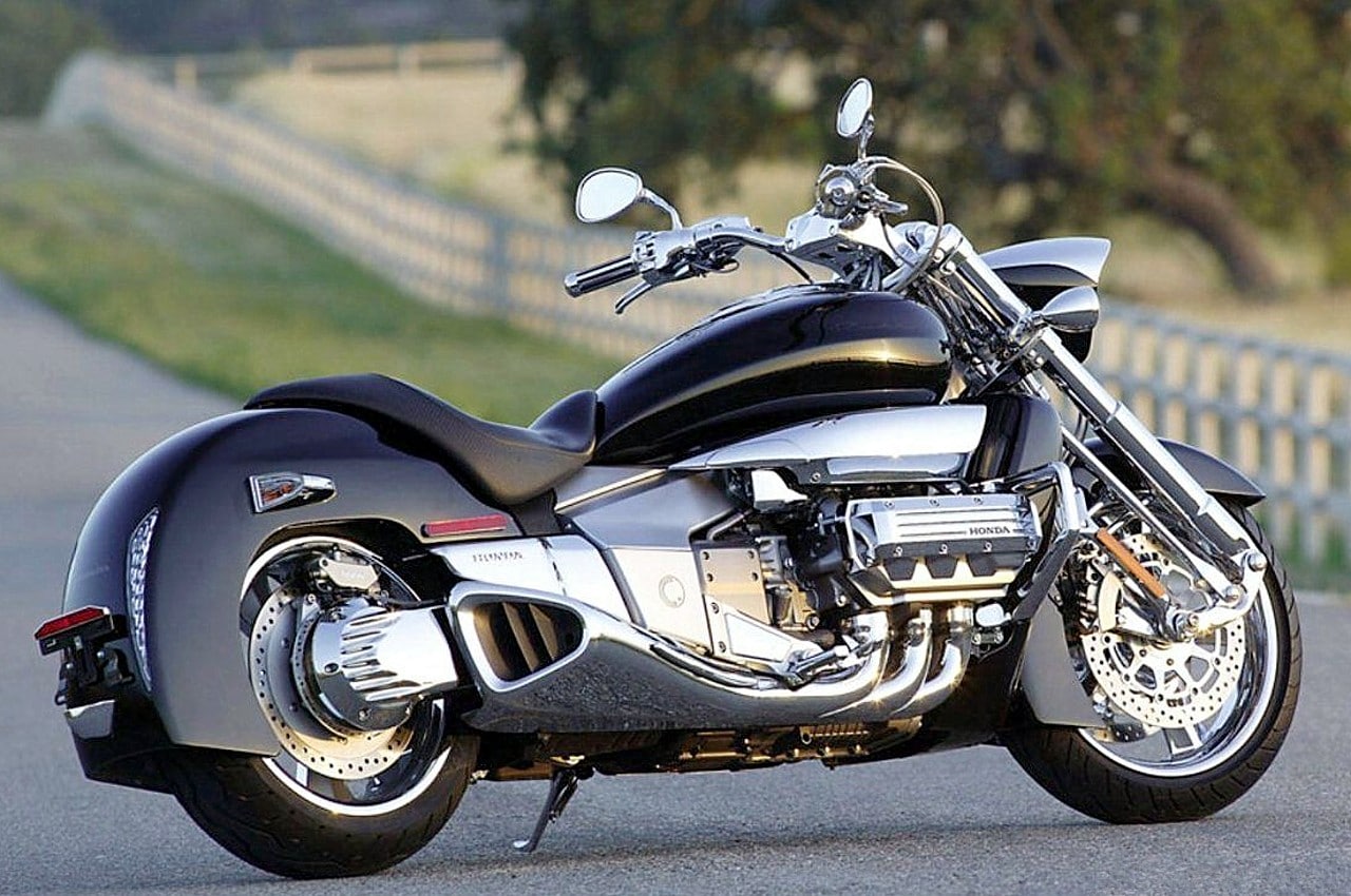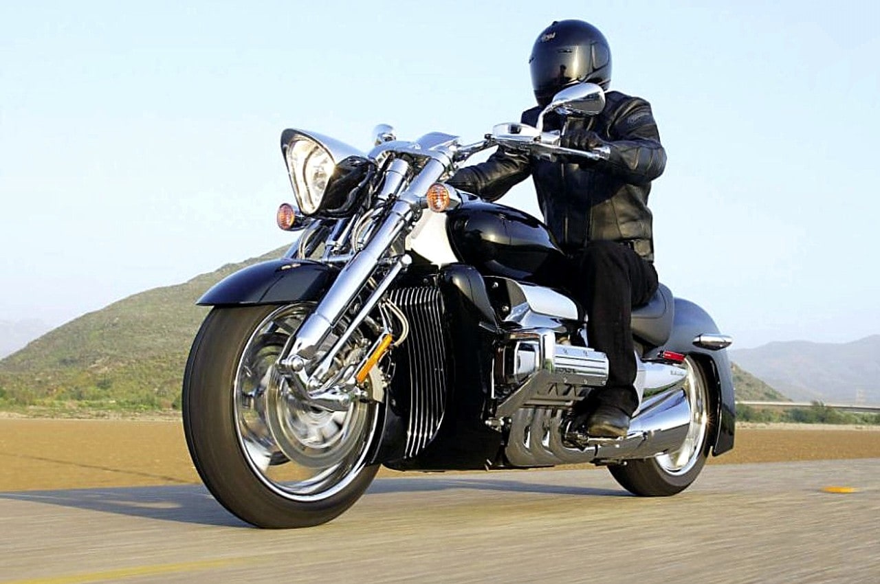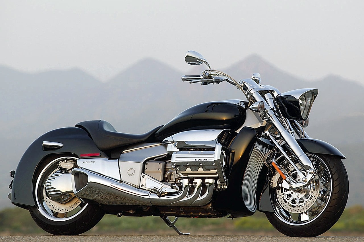 La Rune fait appel au même bloc moteur à six cylindres opposés, que la GL 1800…, outre l’architecture flat six, que Honda est la seule à utiliser avec Porsche, la technologie employée reste relativement classique : refroidissement liquide, simple arbre à cames en tête entraîné par chaîne, deux soupapes par cylindre et injection PGM-F1. Sauf que là où l’on trouve deux corps d’injecteurs sur la GL, il y en a six sur la Rune…, combinés aux six sorties d’échappement aboutissant dans deux silencieux triangulaires hautement stylisés, la moto développe la bagatelle de 91 chevaux à 5 250 trs/M…, le tout avec un couple titanesque transmis à la roue arrière par l’intermédiaire d’une boîte à cinq rapports et d’un solide cardan.