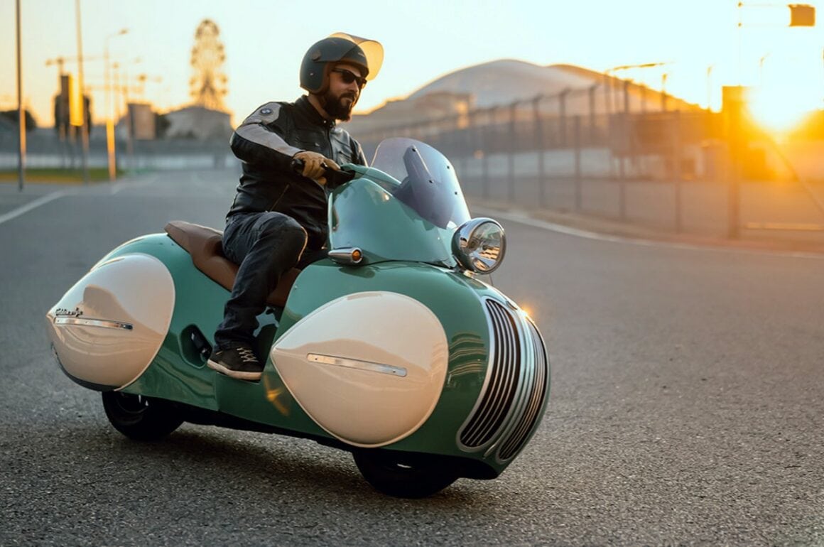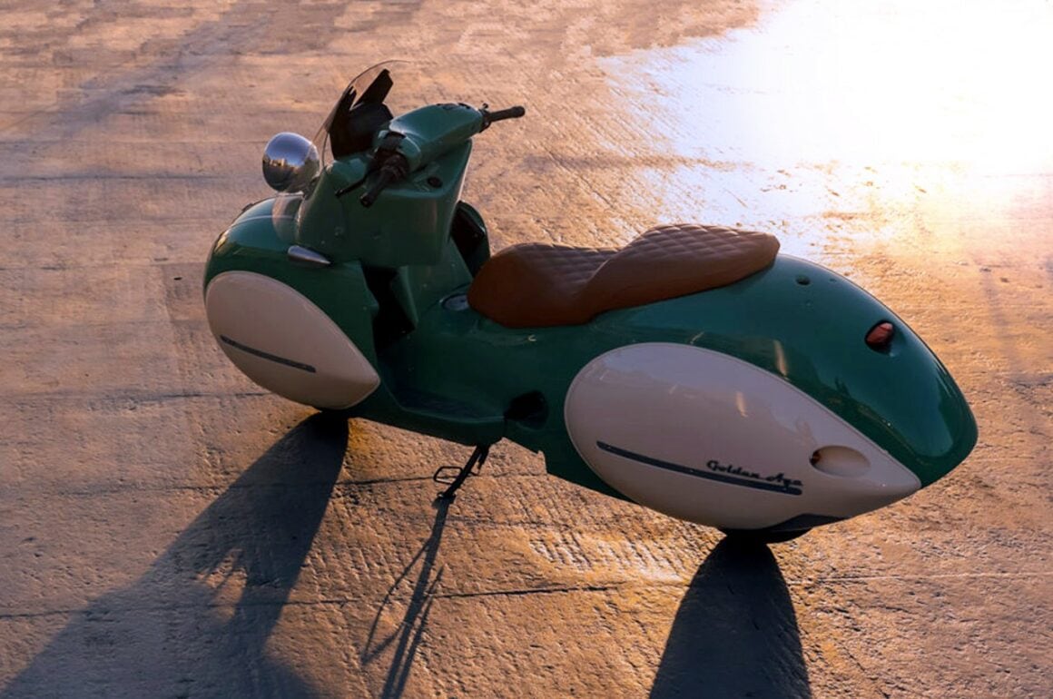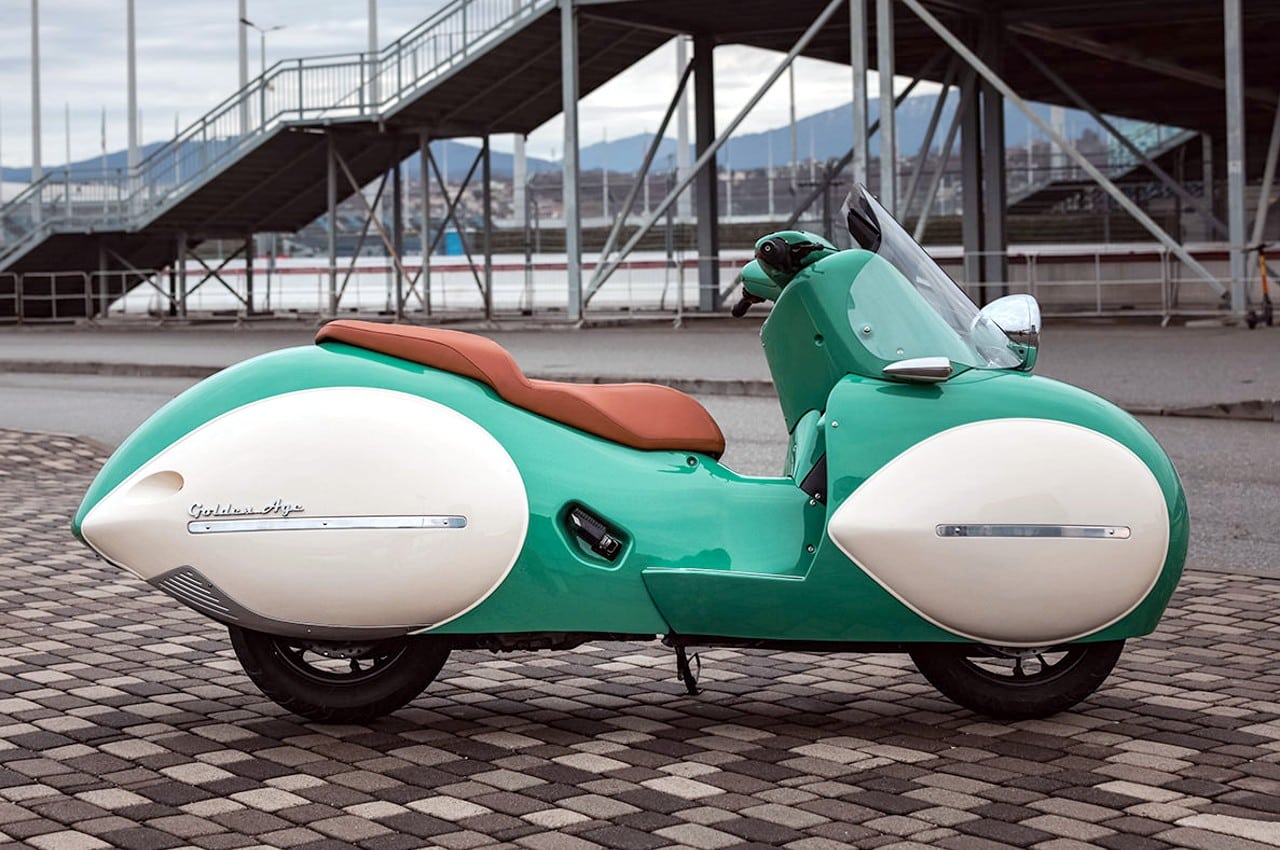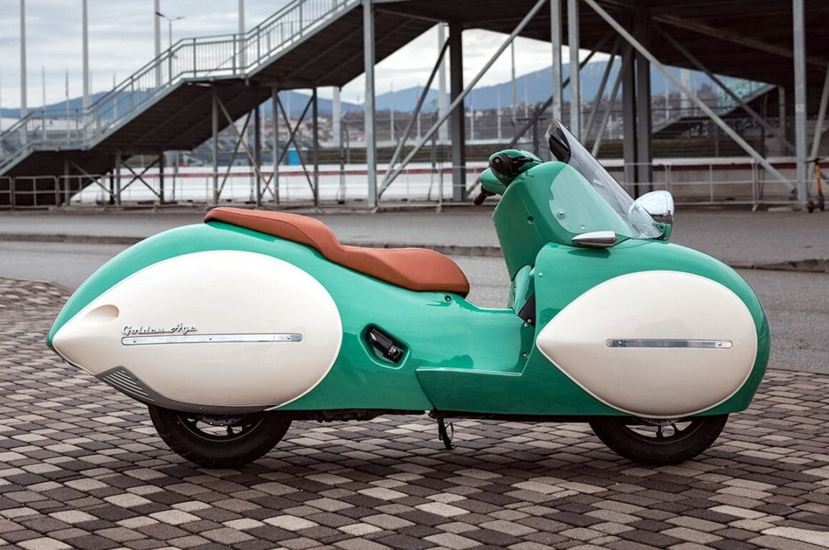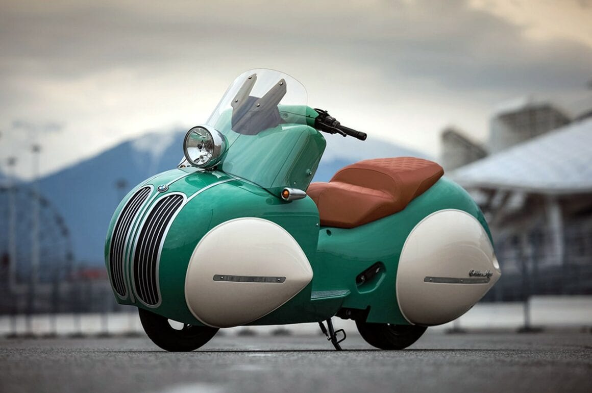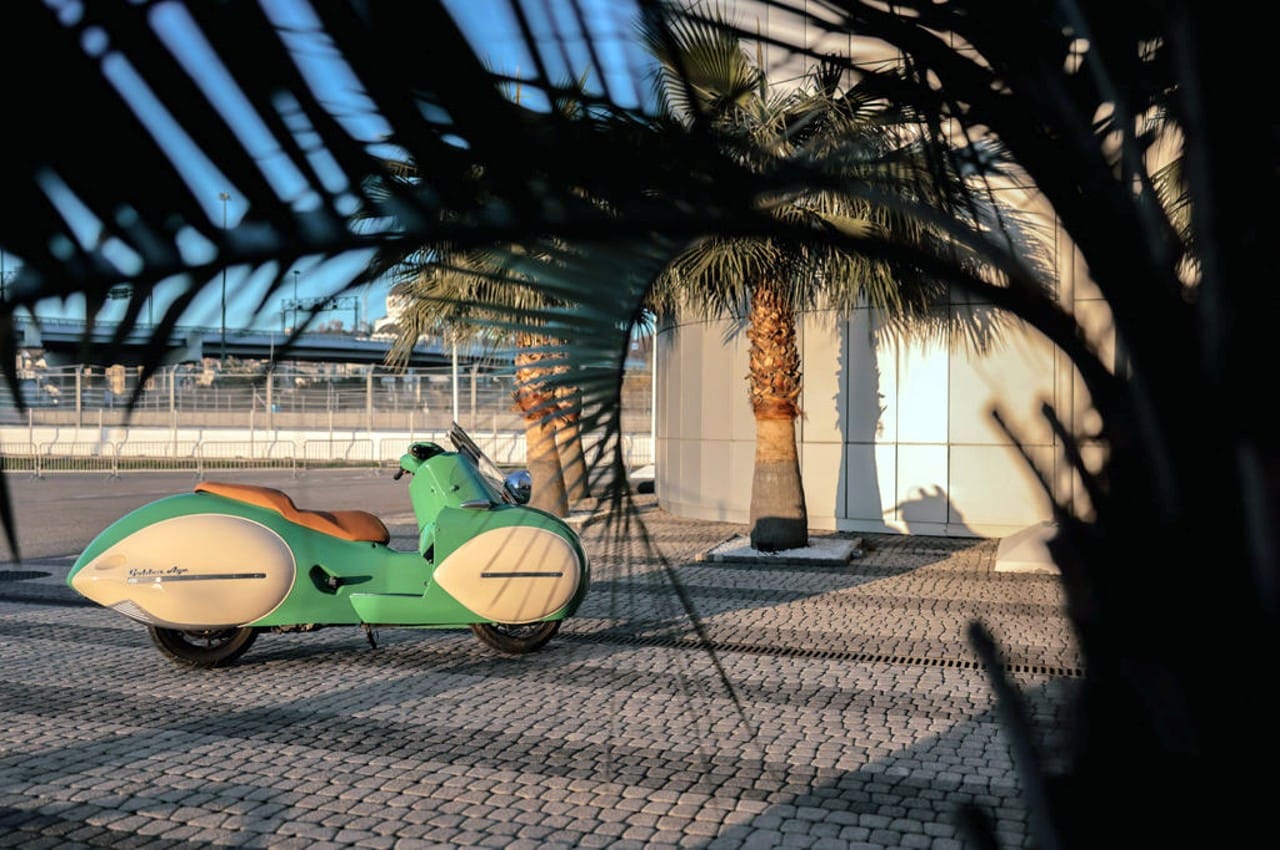 “L’âge-d’or” de Nmoto s’inspire de l’époque Halcyon d’avant-guerre dans une réincarnation moderne alliant des lignes intemporelles à des capacités modernes… “L’âge d’or” canalise le prototype Henderson Courtney de 1936 sur base d’une nouvelle BMW C400X d’environ 35cv. Qualifié de “Chef-d’œuvre New-art-déco”, la bête de 193kg capable de plafonner à 130km/h, est réalisée façon “Kit”, de neuf pièces en fibre de carbone, un re-désign développé et produit en collaboration avec les motos zillers dont j’ai déjà causé dans cette section Moto de www.GatsbyOnline.com.