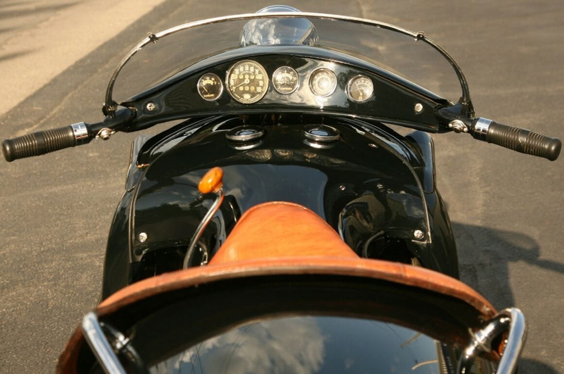 Le travail sur le métal, même avec les critères d’aujourd’hui, offre un résultat époustouflant à regarder avec des courbes séduisantes et de nombreuses subtilités dans les formes. Incroyablement beau, c’est sûr, mais aussi peu pratique et difficile à conduire, le corps incurvé du streamline était à la fois lourd et difficile à reproduire et la position assise étant très exigüe, surtout pour une personne de grande taille. Cependant, la croyance veut que Courtney était de petite taille et ait conçu la moto pour qu’elle lui convienne mieux que la Henderson d’origine beaucoup plus grande. Apparemment, il l’a également piloté assez souvent, bien qu’il n’ait jamais construit d’autre exemplaire. La moto que vous voyez sur ces photos est la seule et l’unique existant au monde.