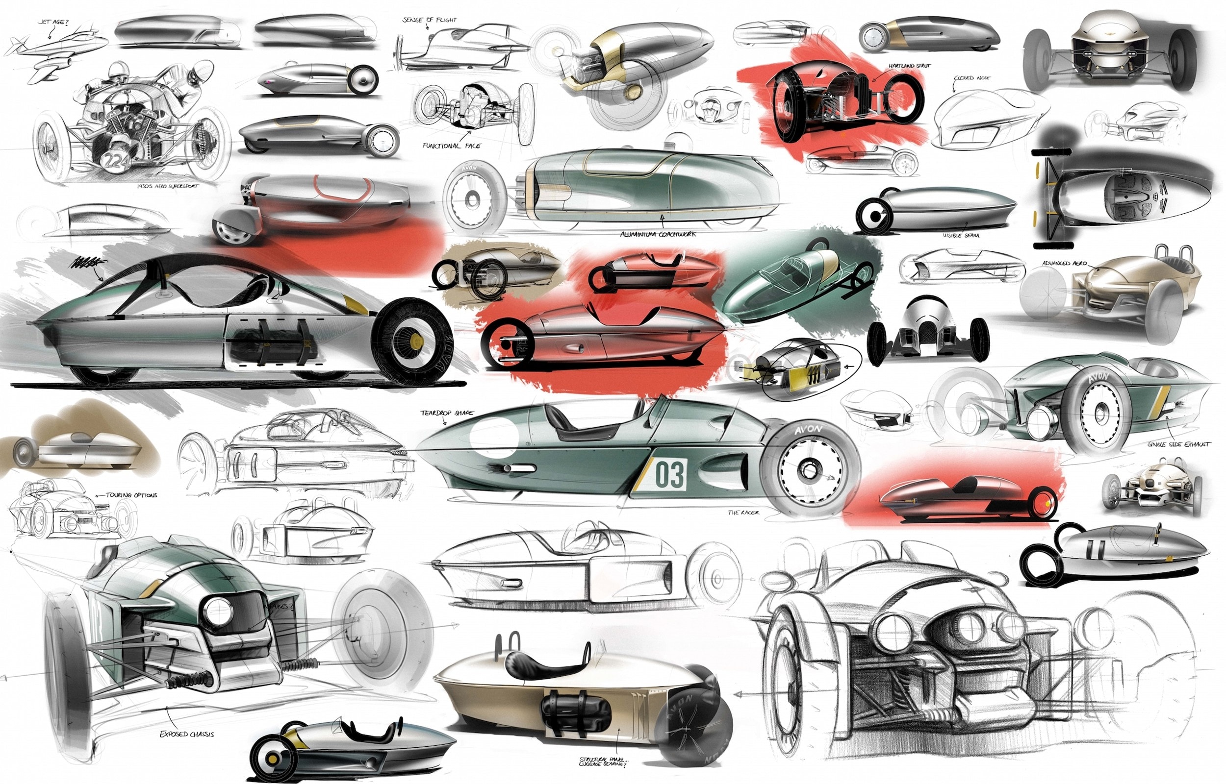 L’engin rustico-vintage emprunte le patronyme P101 en référence au “Project 101”, le nom donné en interne au projet de relance du Three Wheeler il y a plus de dix ans. Cette édition spéciale est limitée à seulement 33 exemplaires, chaque revendeur Morgan ayant déjà reçu un nombre limité de commandes possibles. La production du véhicule sous forme classique se poursuivra en parallèle et cessera fin décembre 2021, car le fameux moteur bicylindre en V ne sera alors plus homologué avec l’apparition des nouvelles normes. Morgan assure cependant que le Three Wheeler n’est pas mort et qu’il reviendra “électrifié” plus tard, sans doute sous une autre forme qu’il faut deviner sur le “poster” général des croquis… Le prochain est la dedans…