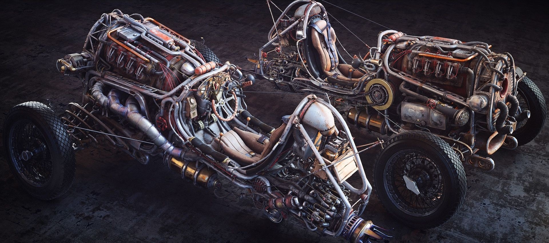 Elle passe par le champ des arts visuels en allant jusqu’à la musique. Cette uchronie ouverte est basée sur la projection d’un futur probable partant du xixe siècle et de l’époque victorienne en gardant les codes et l’esthétisme de cette époque. On y retrouve l’utilisation de matériaux tels que le cuivre, le laiton, le bois et le cuir, et l’approche de l’aventure et de l’expérimentation dans un monde où tout reste à découvrir et à être développé, dans l’esprit de la première révolution industrielle et en s’appuyant sur des sources d’énergie dévoyées d’où l’utilisation massive des machines invraisemblables issues du Steampunk, mais sans la vapeur… une nouvelle invention pour requalifier le genre de littérature né à la fin du xxe siècle, forgé en référence au cyberpunk, iuci réadapté avec les bons vieux moteurs à explosions. Le “HotPunkRodTrike” fait ici son apparition dans une historiette fantasy, d’anticipation science-fictionnesque. Cette nouvelle et audacieuse esthétique a été forgée par allusion au cyberpunk de lK. W. Jeter, Tim Powers et James Blaylock… On délire comme on peut !