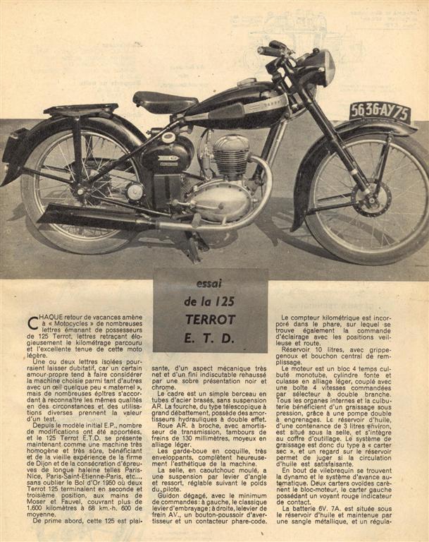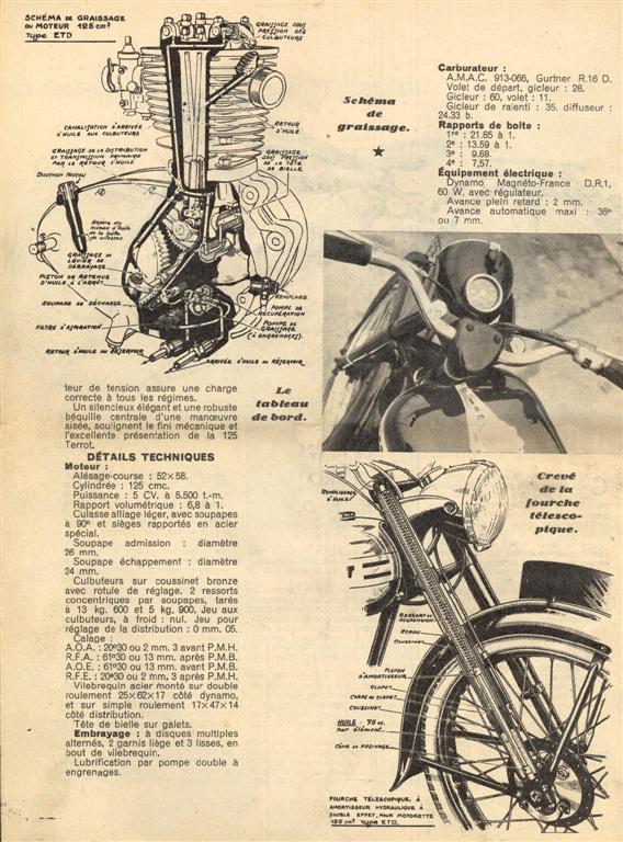 La Terrot 125 ETD apparait presque comme une modernité en 1948 avec sa fourche télescopique, un peu floue toutefois.