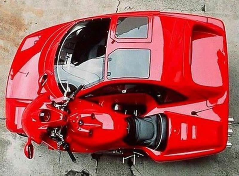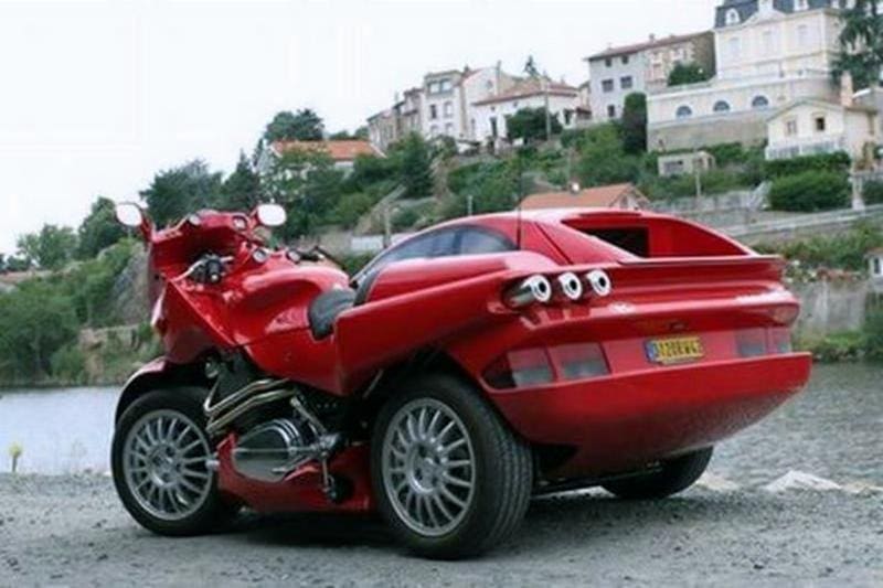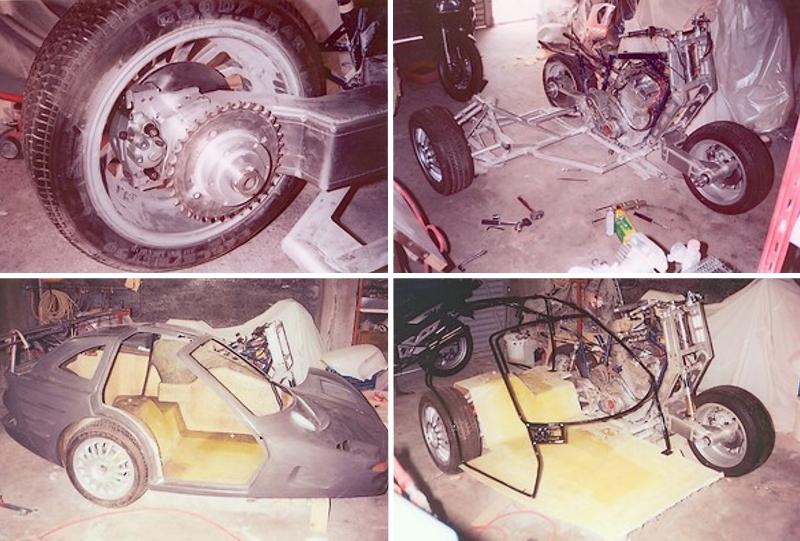 Headlight comes from a Kawasaki 1000 RX bike, the tail lights from a Citroën Xantia car.