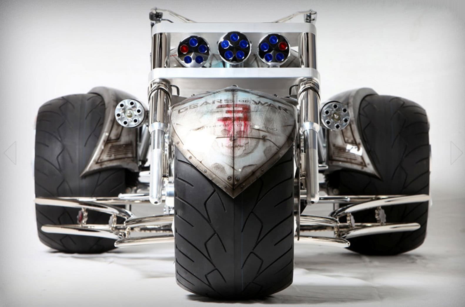 A la Daytona Bike Week en Floride les festivités sont nombreuses et y sont exposées une pléthore de motos tueuses, des nananas bandatoires, des stars et starlettes célèbres, le clou du spectacle étant la présentation de “l’Ultimate Custom Bike Builder” une folie qui est associée au fameux jeu vidéo “Gears of War” d’Epic Games qui, il y a 10 ans, avait posé les bases de ce qui deviendra l’argument de vente numéro 1 du début de vie de la Xbox 360 et l’une des plus grosses franchises de la marque. Dix ans plus tard, Microsoft a racheté la licence à son créateur… Je n’en dirais pas plus par manque de connaissance !