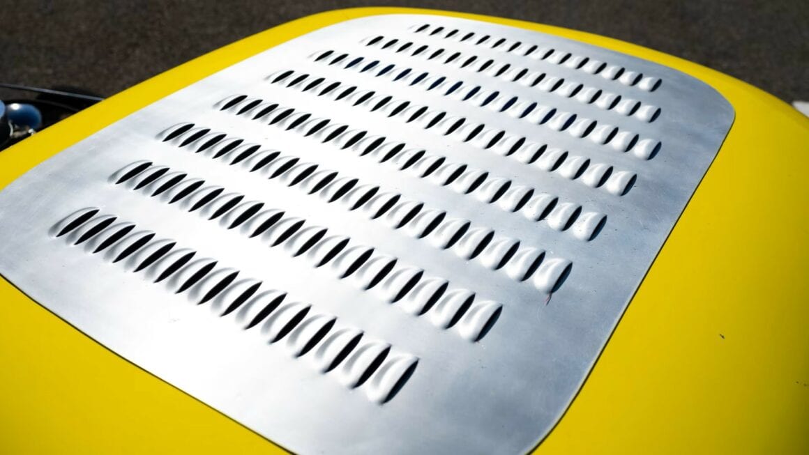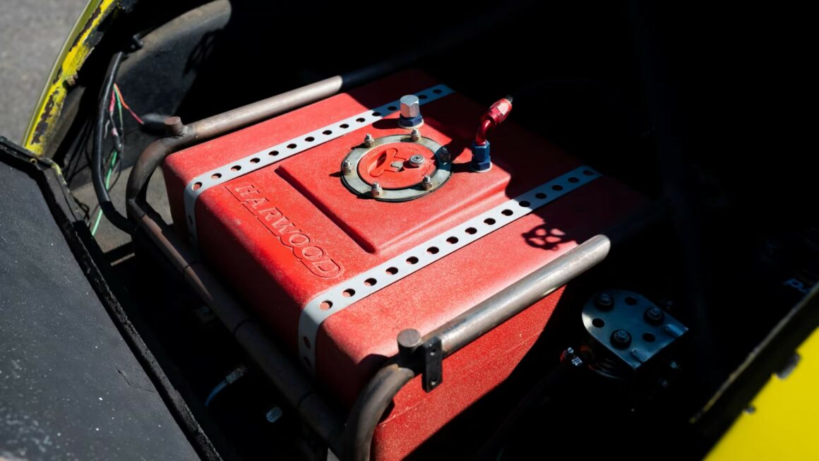 J’en viens enfin à mon testament, je t’offre un cadeau virtuel d’envergure, un Hot Rod imbattable en courses sur lacs salés, très connu sous le nom de “Chicken Coupe”, le Hot Rod personnel des frères Muro, qui a couru à la fois à El Mirage et à Bonneville dans les années 2000… Il roule et gagne régulièrement depuis les années 1960, donc bien avant que tu viennes à Chromes&Flammes qui vient à toi en retour. Cette voiture montre l’évolution du Hot Rodding Californien, avec des mises à jour au fil des ans. C’est un des premiers Hot Rod’s Coupés de course sur lacs salés, similaire au coupé révolutionnaire des frères Pierson mais avec 7 pouces retirés de la ligne de toit. L’âge de ce Hot Rod se vérifie en constatant que tout ce qui était métal a été réalisé par soudures au gaz… Son capot est authentiquement de 1933, son moteur V-8 355ci est une relique avec ses arbres à cames Comp Cams…