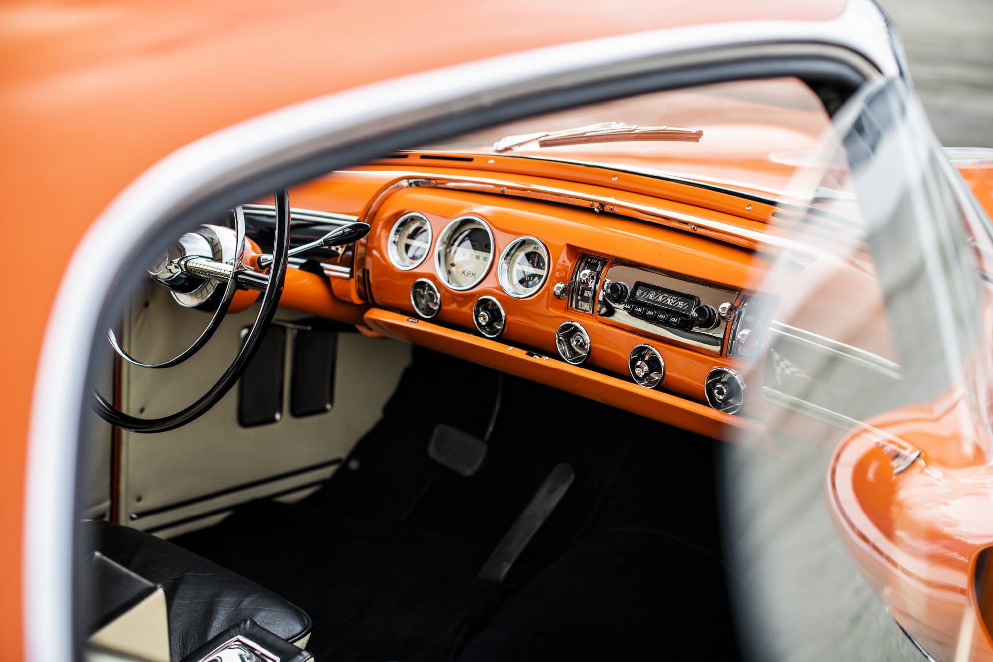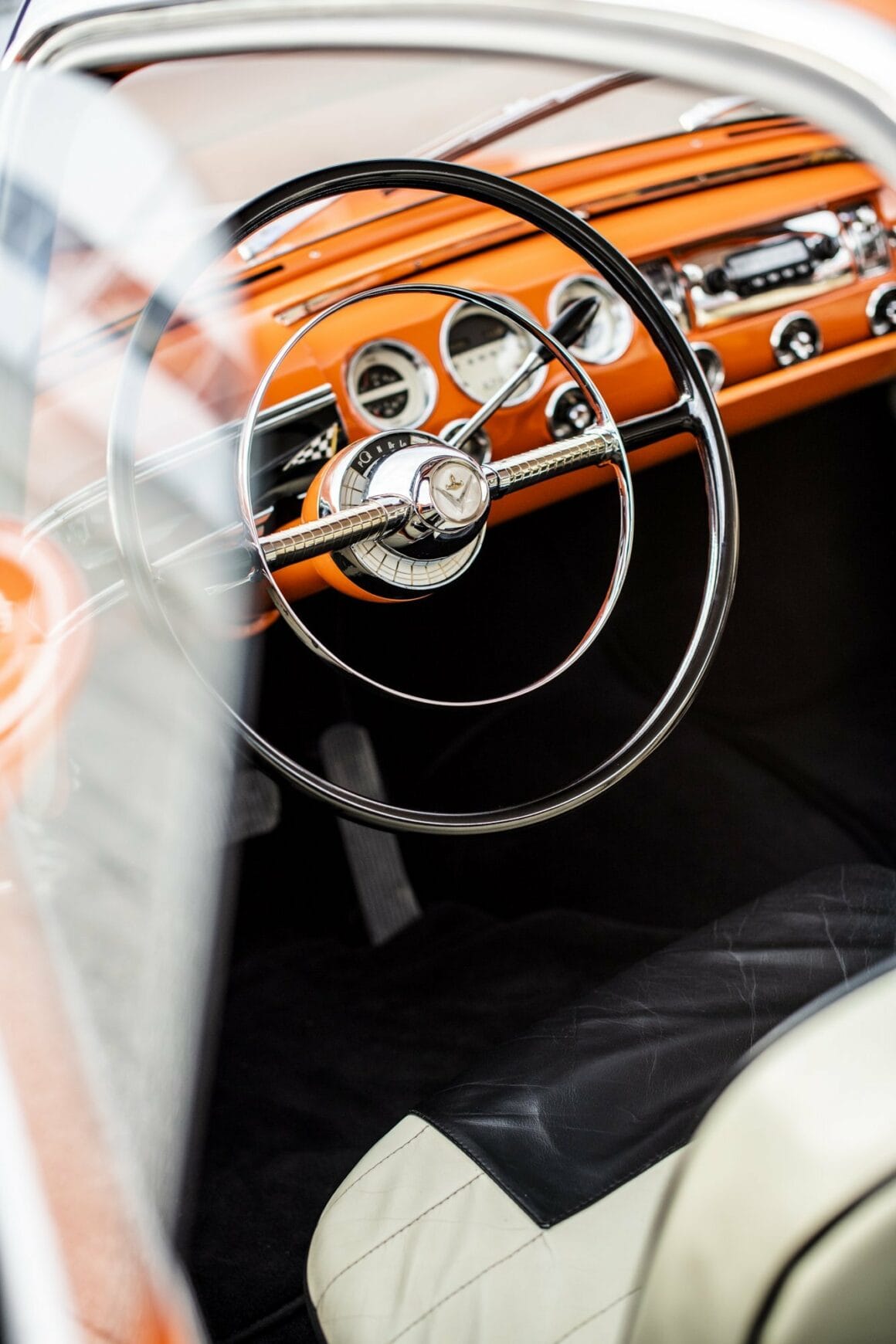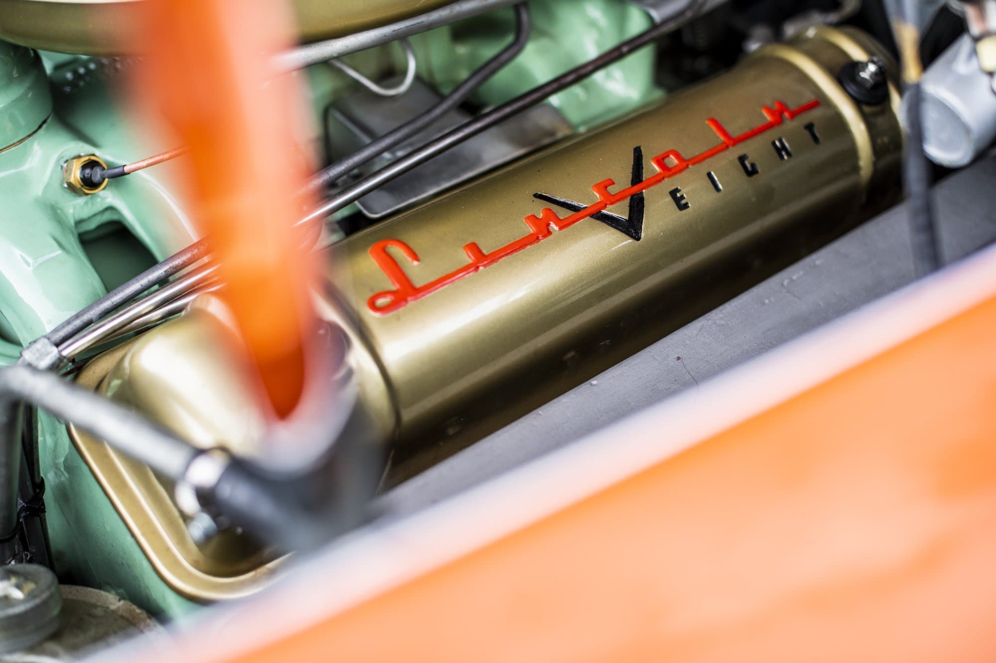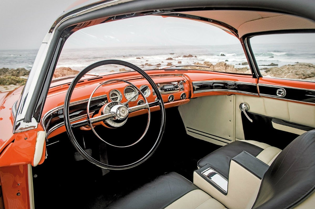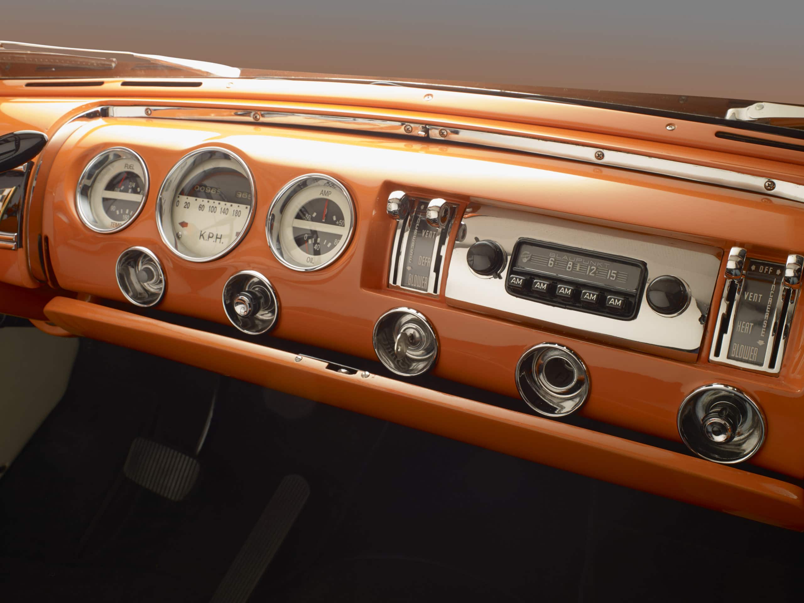 Côté mécanique, le V8 culbuté de 341ci développant 225 ch de série est relié à une transmission automatique 4 vitesses. Devant le pare-brise panoramique, le volant et la colonne de direction sont ceux de la Lincoln 1955 de série. La planche de bord est masquée par un large volet décoré des lettres stylisées du mot Indianapolis. Il s’escamote vers le bas grâce à un bouton. Les cadrans et les commandes sont, là encore, largement inspirés de l’aéronautique.