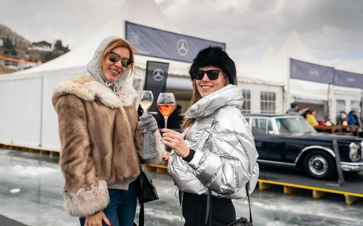 Pour célébrer l’amour pour le vieux métal, vous trouverez difficilement une plus belle toile de fond pour les automobiles et les manteaux de fourrures que n’importe où ailleurs dans le monde. Après tout, le public n’en vaut pas moins la peine d’être vu dans ce qui est peut-être la station de ski la plus noble des Alpes : “Amusez-vous, conduisez prudemment et soyez élégants”…