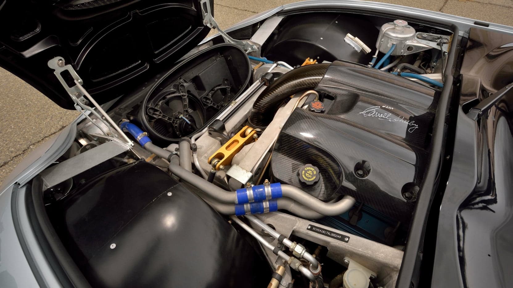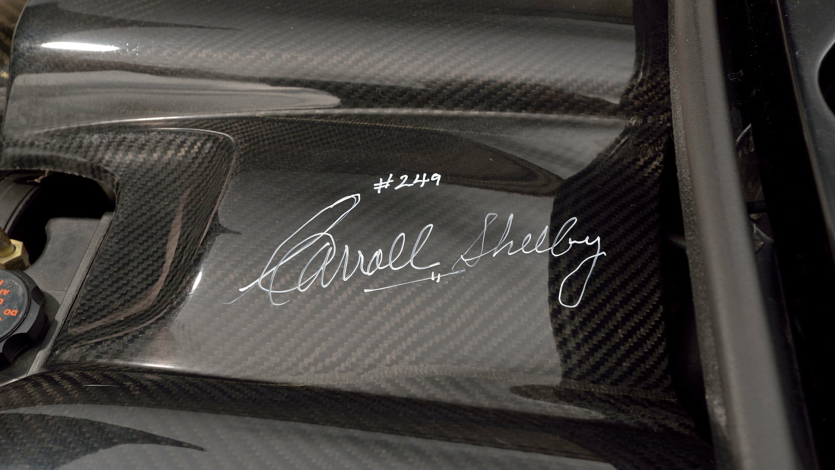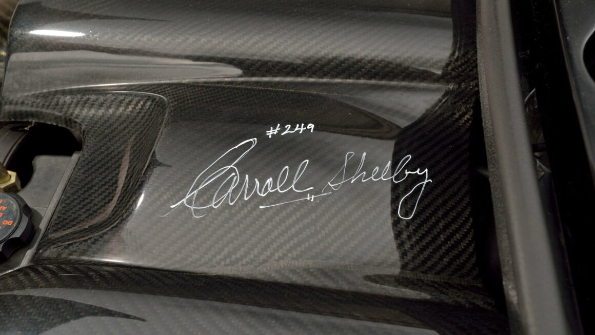 No. 249 of 249 produced by Shelby American, with dash plaque Carroll Shelby signed carbon fiber engine cover. 4.0L DOHC 32-valve V-8 engine. ZF 6-speed manual transmission. Centennial Silver exterior and Two-tone Silver and Black interior. Carbon fiber dash surround. Air conditioning. Power windows. Power steering. Dynamic suspension. Front and rear drilled and slotted power disc brakes. Factory 5-spoke wheels… The most important Carroll Shelby Car” !