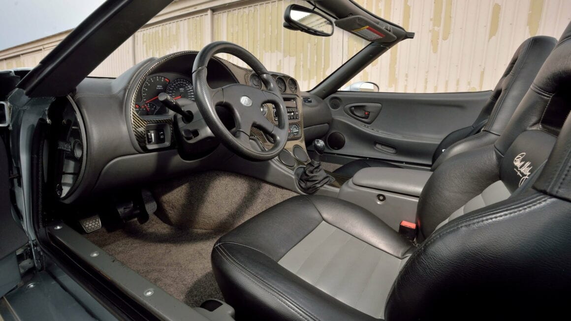 Ce sont des 18×10,0 pouces à l’avant (avec un décalage de 45 millimètres) et 18×12,0 pouces à l’arrière (avec un décalage de 28 millimètres) et montés en Goodyear Eagle F1 Supercar 265/40ZR18 AV et 315/40ZR18 AR. Shelby avait commencé son ultime arnaque avec ses propres idées de ce que devrait être une voiture de sport moderne à deux places. Puis a été créé le concept-car qui a fait ses débuts au Salon de l’auto de Los Angeles en 1997.
