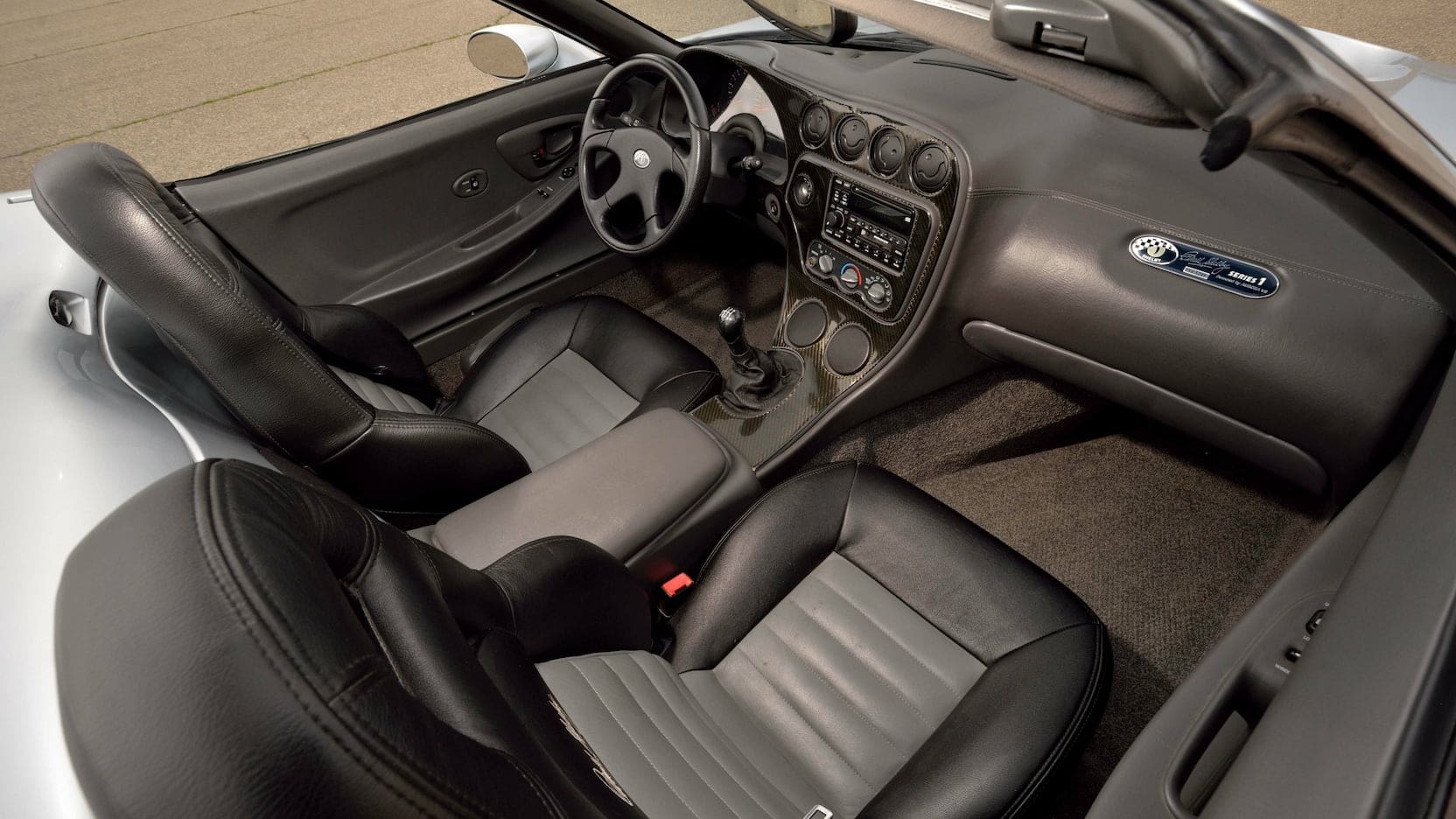 Un volant et un pommeau de levier de vitesses gainés de cuir Momo complètaient les garnitures intérieures, mais il n’y avait pas d’airbags, les fabricants de petits volumes étant admissibles aux USA à une exemption de l’exigence fédérale sur les coussins gonflables, et Shelby les a utilisée (les coûts de développement auraient été stupéfiants). Je n’ai pas parcouru 20 mètres en Série 1 avant d’être convaincu que cette voiture était une arnaque !