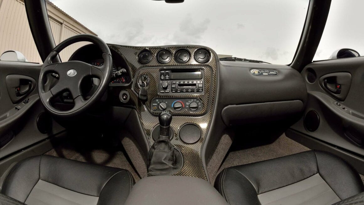 Il y avait amplement d’espace pour les jambes (mais pas beaucoup d’espace supplémentaire), mais les pédales étant montées assez loin à gauche la position générait des crampes que le repose-pieds, à la Viper ainsi que le trop large tunnel central (énorme) accentuaient…. Le pare-brise étant un composant modifié retaillé de la Corvette se fendillait à grande vitesse, il y avait trop de secousses de vent (peut-être le plus de tous les roadsters).