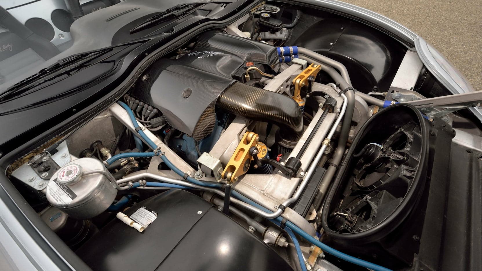 Cette voiture ne faisait pas les choses en termes de performances, mais de moyen de gagner des dollars ! La structure de toute voiture est son châssis, mais son cœur est le moteur, alors, pourquoi choisir le V8 Oldsmobile Aurora de 4L ? Parce que Carroll a estimé qu’il s’agissait du moteur le moins cher ayant la technologie adéquate à l’époque pour “donner le change” et qu’il s’intégrait bien dans le compartiment moteur.