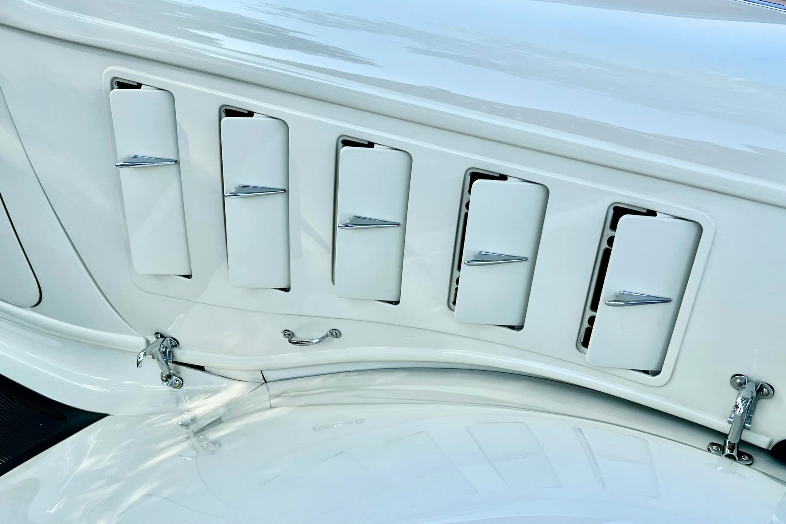 Une colonne inclinable et télescopique Cadillac supporte le volant. Le tableau de bord d’origine descendait jusqu’à la ligne basse juste en dessous de la porte de la boîte à gants, ve qui a été laissé. Pour accueillir la climatisation et les commandes, Ed Britz afabriqué le panneau assorti en dessous du tableau. Faire fonctionner l’ordinateur du moteur et installer le câblage Hellcat dans la Chrysler a peut-être été la plus grande difficulté. Il n’y avait pas de faisceaux de câbles en vente libre au moment de l’échange. George a donc envoyé le harnais électrique à Hot Wire Automotive à Mena, Arkansas : Bonne chance !