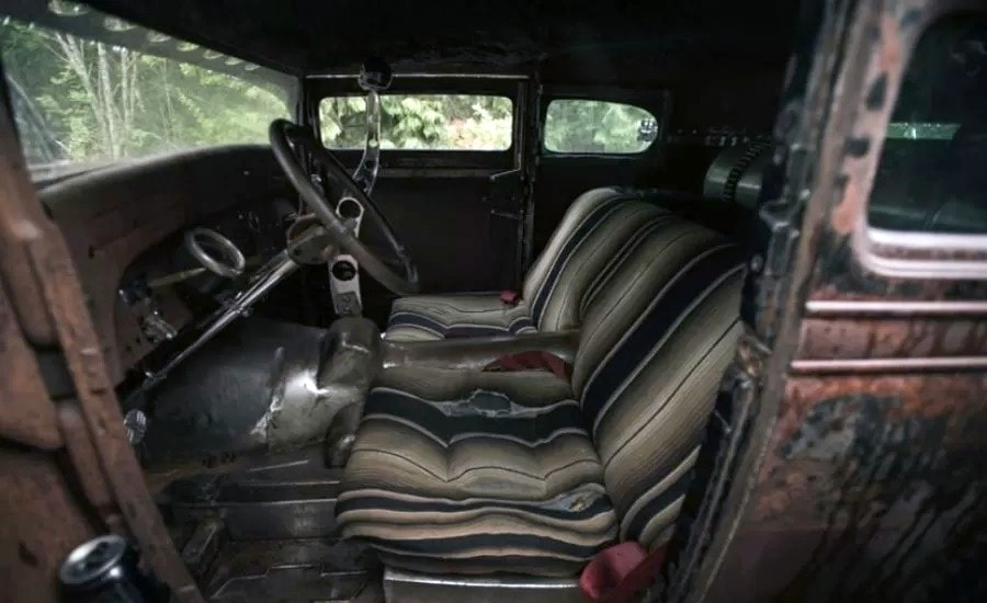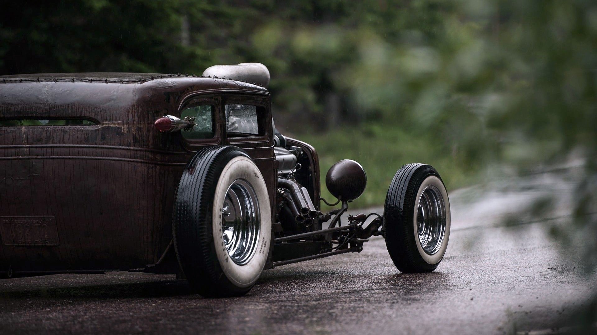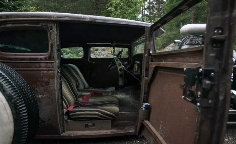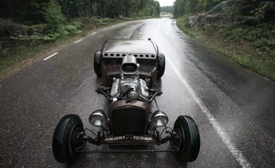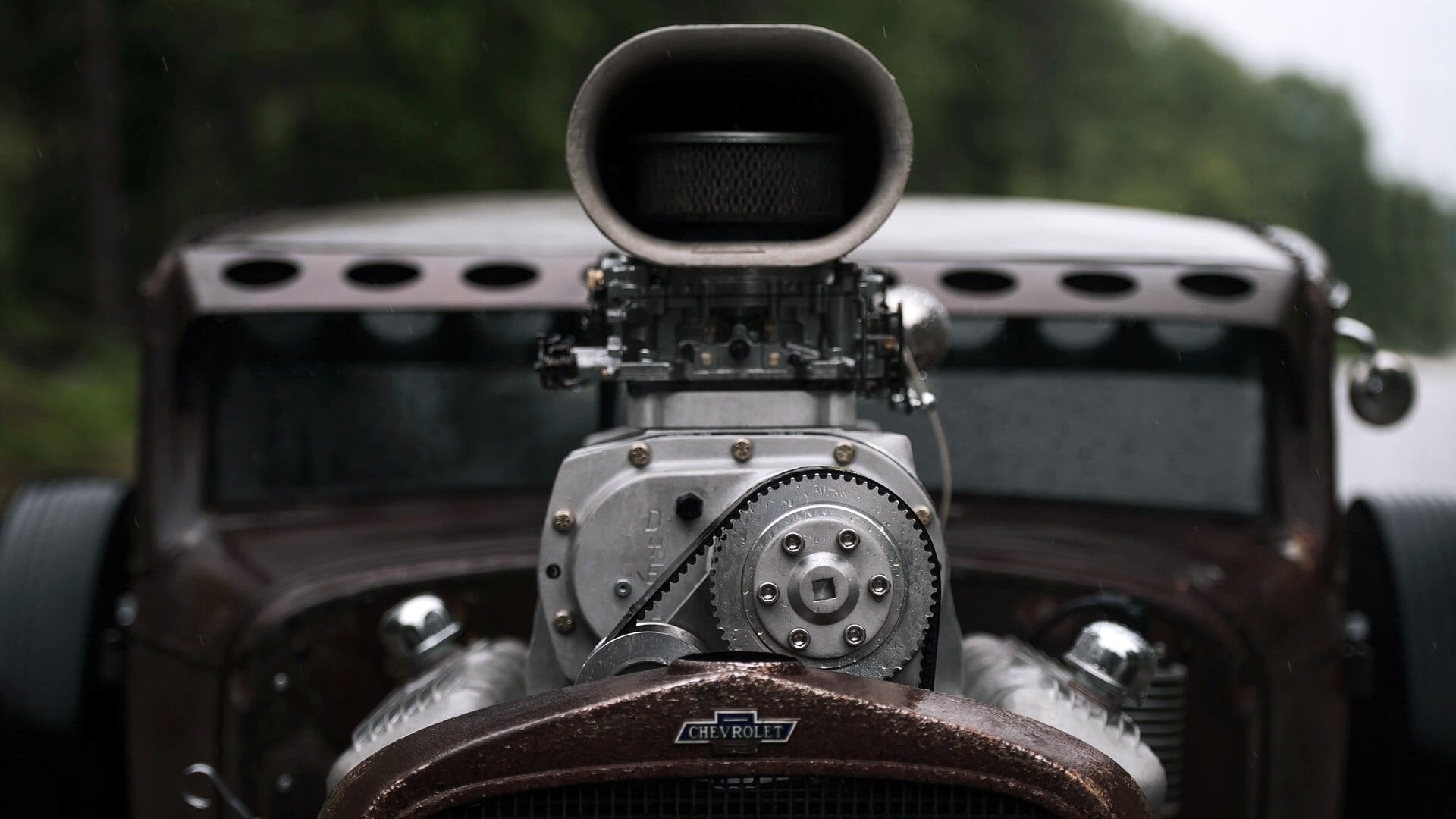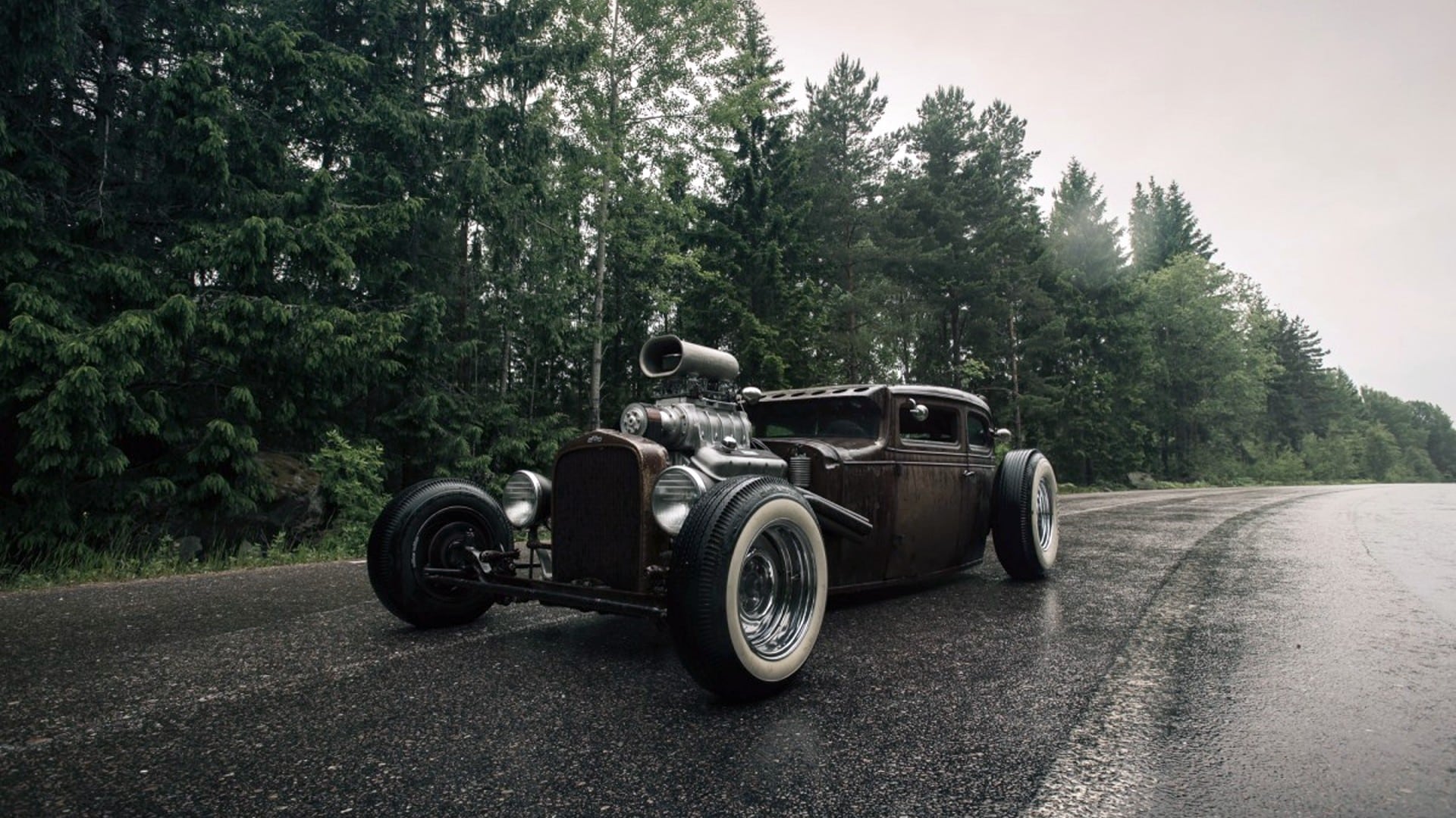 La Chevrolet AE Independence 1931 remplaçait l’AD Universal de 1930… Comme intro, c’est basique, con et logique. A cause de la Grande Dépression, la production a chuté d’environ 8% pour s’établir à 619.554 voitures, mais alors que la production de Ford chutait de près des deux tiers, Chevrolet a repris la première place du tableau des ventes de voitures américaines. Le principal changement entre les Series AE et AD (sortante) était l’augmentation de l’empattement à 2.768,6 mm. Elle restait motorisée du six cylindres “Stovebolt Six” de 3.180 cm3, produisant 50cv (37 kW) et pouvait atteindre une vitesse de pointe de 137km/h. Généralement les Hot Rodders s’efforcent que tout soit absolument parfait pour une séance photo, mais cette Rusty Demon Independence étant une oeuvre artistique selon son créateur Viking-Suédois Emmanuel Odin Sandén, la séance photo de son Rat Rod devait impérativement se dérouler dans la grisaille et la pluie… Si je devais choisir une séance photo et faire pleuvoir au moment des shot’s, ce serait cool.