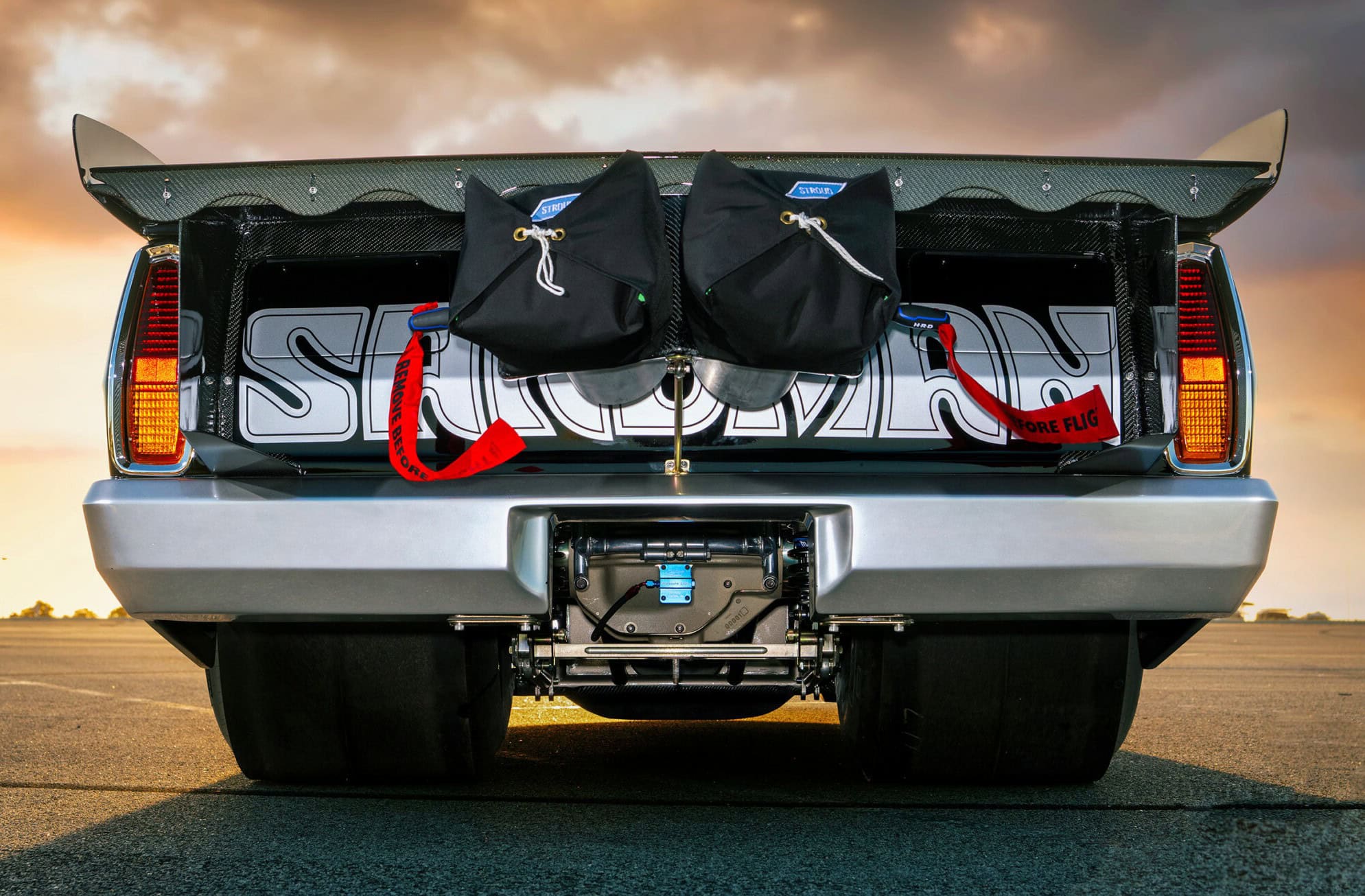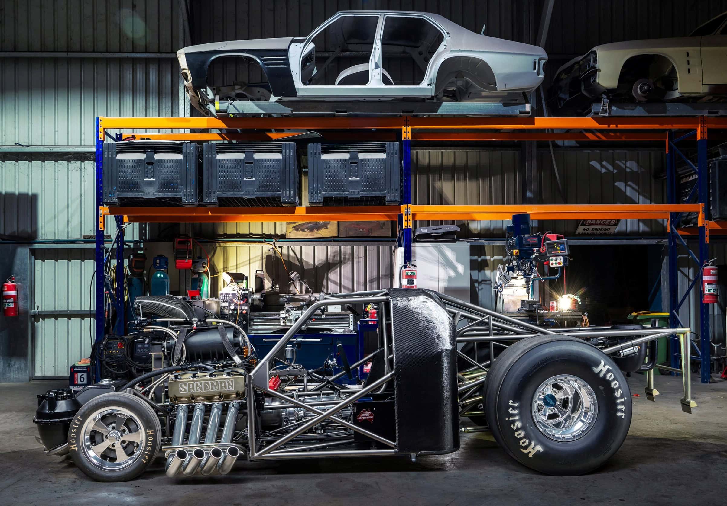 J’ajoute à l’attention de mon lectorat que cet engin est un Dragster qui pour d’obscures raisons est immatriculé et peut circuler sur routes “ouvertes” en Australie uniquement…
