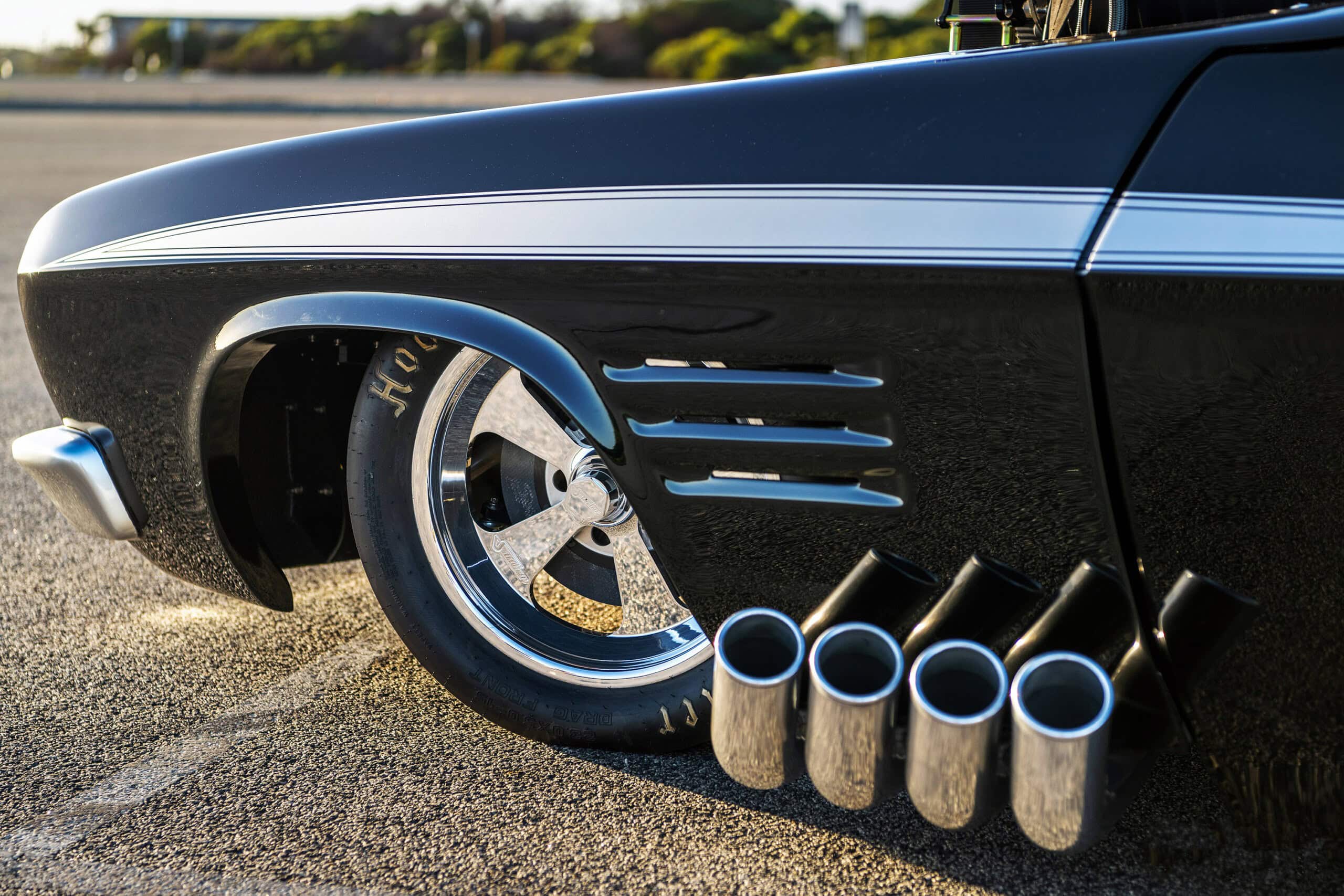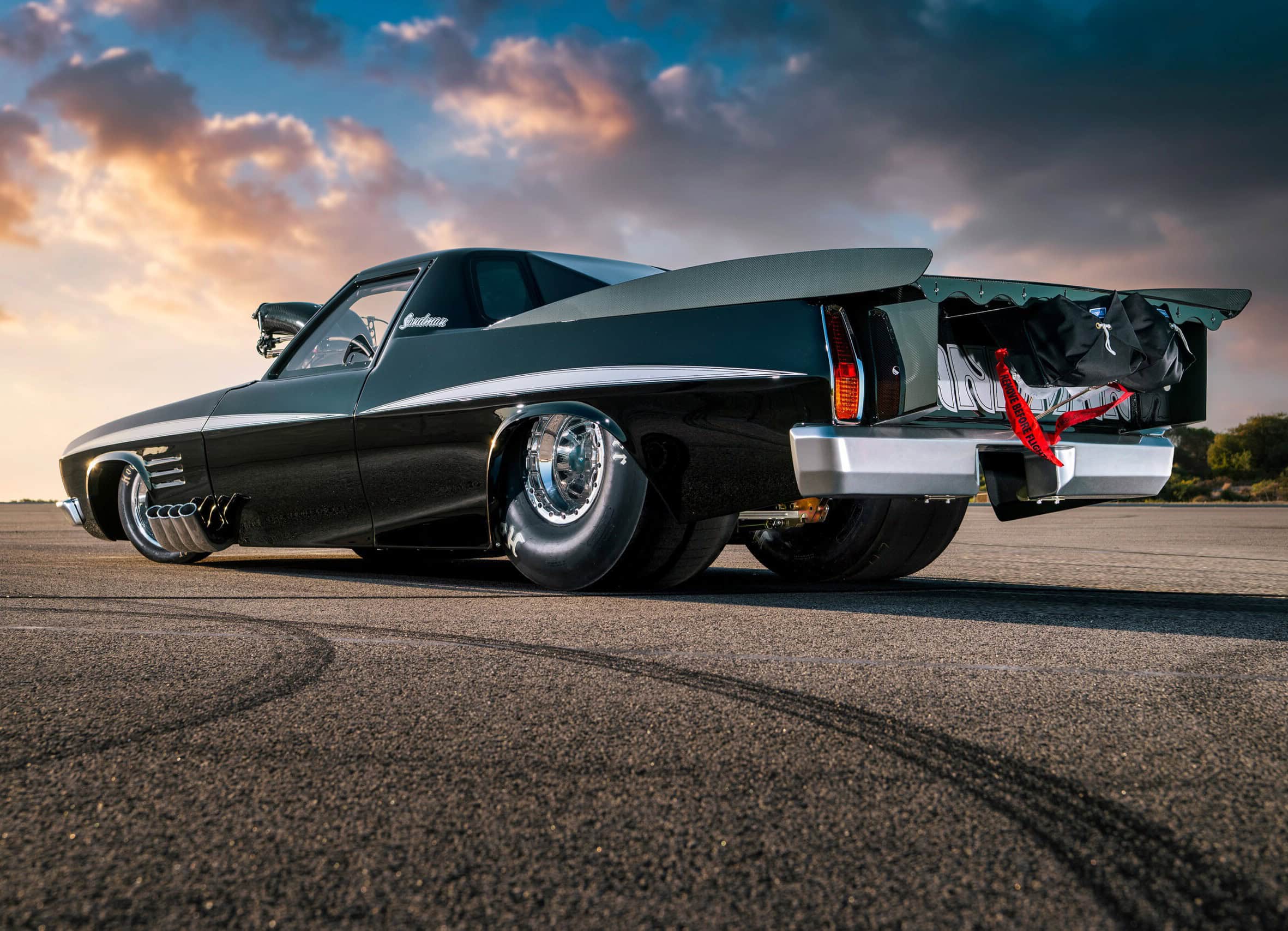 La genèse de cette construction remonte à plus de 15 ans, Les plans initiaux étaient de concourir avec un dragster roulable sur routes “ouvertes” et de faire profits des paris concernant les burnout’s sur les parkings de supermarchés, et les concentrations. Boris ne voulait pas d’arceau de sécurité exposé, d’où le carénage qui part de l’arrière de la cabine. Boris était enthousiaste à l’idée d’utiliser un 308ci avec un compresseur 6/71 pour les Outlaws, mais les frères Chapman que Boris a aidés lorsqu’ils construisaient leurs voitures de course, lui ont déconseillé. Ils lui ont dit : “Votre moteur V8 308ci ne va pas durer ; Il va exploser, alors pourquoi ne pas remotoriser directement avec un Big Bloc ?”... Le Monde est soudainement devenu plus complexe à Boris Pacey…