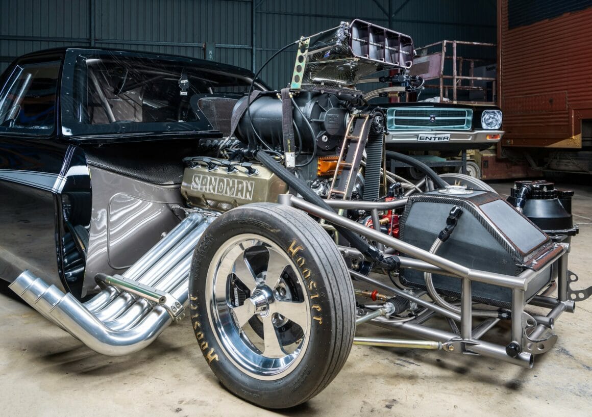 Explication simple et basique, je ne fais pas les poubelles et ne fréquente pas, avec la même assiduité hyper maladive que certains et certaines, les réseaux asociaux ! Voilà… L’histoire de ce StreetDragster Sandman Doorslammer créé/fabriqué par Boris Pacey (un Australien aux origines Russes), a connu quelques rebondissements au cours de sa gestation de 15 ans jusqu’à son achèvement, lorsque présenté au show Motorvation qui se déroule chaque année depuis une vingtaine (d’années) sur le continent des Australopithèques, Koalas et kangourous… Sachez que les australiens blancs sont les descendants des colons majoritairement britanniques qui ont anéanti la France Napoléonienne après avoir amené l’Europe en décadence et avoir brûlé Jeanne d’Arc…