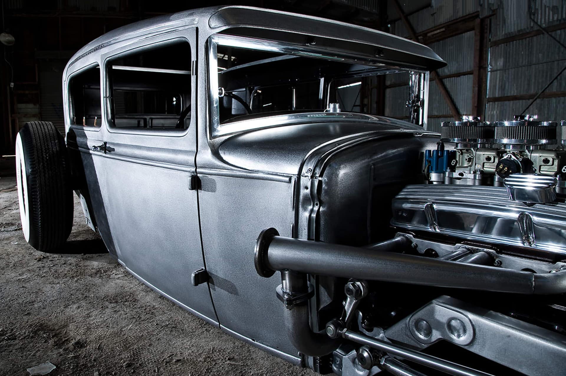 “Alors que la carrosserie était sans pourriture, elle n’était pas sans problèmes, ayant ramassé beaucoup de bosses et d’imperfections au cours des 83 dernières années. J’ai commencé à couper le toit et à modifier la carrosserie, en ajoutant des planchers en tôle et un pare-feu, en retirant le réservoir de carburant, le bouchon de remplissage et en adaptant un pare-soleil dans le toit. J’ai ensuite ajusté la carrosserie en coupant l’arrière du châssis et en l’étirant au max possible”…
