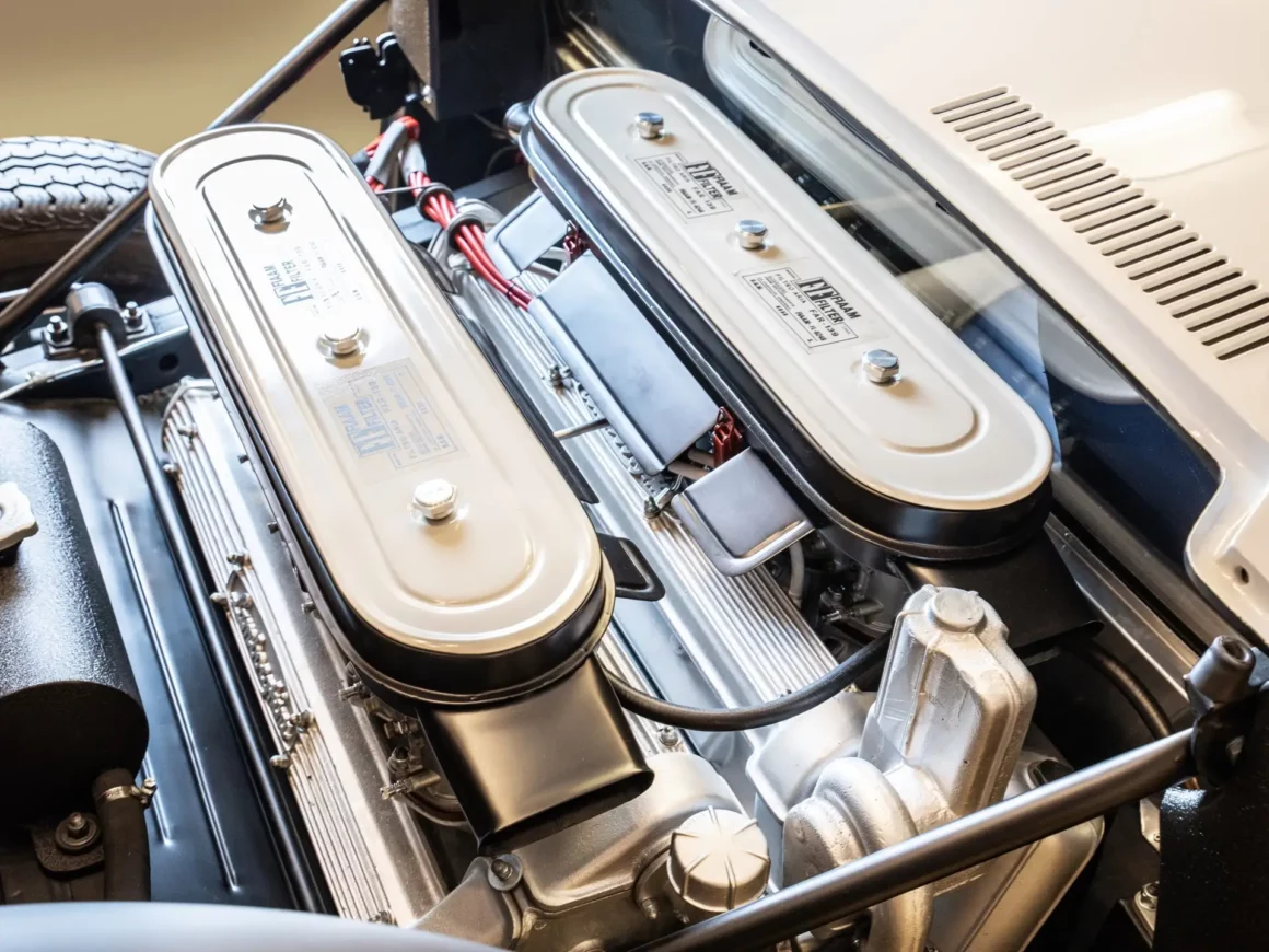 Une barre anti-roulis a été installée à l’arrière pour faciliter la maniabilité, et les freins à disque sur les deux essieux se sont révélés plus que capables de ralentir une voiture aussi férocement rapide. Un autre jeune ingénieur impliqué dans cette voiture révolutionnaire était Giotto Bizzarrini, encore à la fin de ses 30 ans qui avait conçu la Ferrari 250 GTO puis fondé son propre bureau de conseil en ingénierie et conçu le V-12 de la Lamborghini 350 GT.