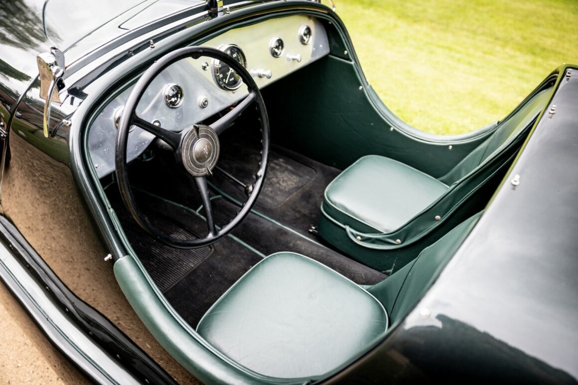 Les jantes en aluminium forgé garantissent une solidité et un minimum de masse non suspendue. La SP40 est conçue pour le pur plaisir de conduite, conçue pour se sentir et se conduire comme une voiture de sport moderne malgré ses repères visuels des années 1930. À l’intérieur, le SP40 se définit par son exécution analogique sur mesure. Le cockpit est aménagé selon la vision du client, utilisant des cuirs “riches” et des détails en aluminium usinés à la main.