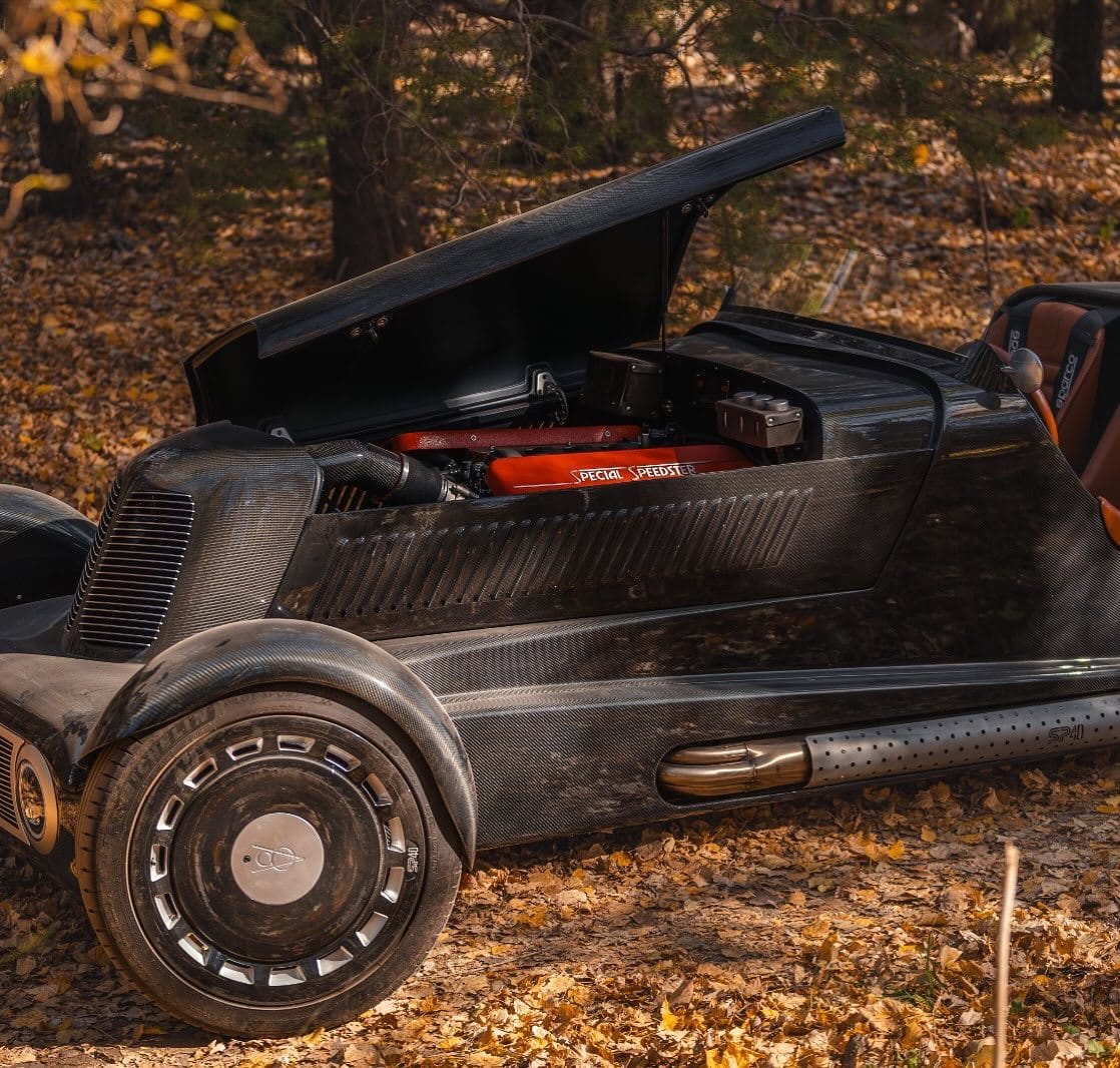 Notamment pour une brillante reconstitution de la Ford 40 Special Speedster Boattail de 1934. Leur décision ultime n’était pas simplement de reproduire l’histoire, mais de la « réveiller ». Cela a conduit à la SP40 Restomod, une création entièrement nouvelle qui élimine la nature capricieuse des équipements de course classiques ET abandonne la carrosserie en aluminium roulée à la main de l’originale pour une suite complète de carrosseries en fibre de carbone.