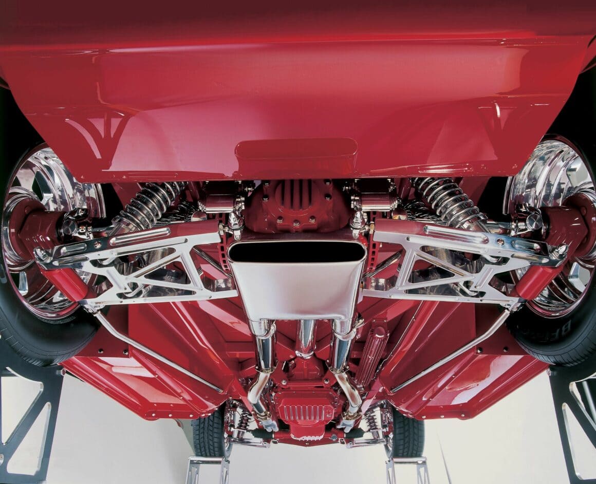 Le travail sur le pont arrière peut laisser penser qu’on a cherché à améliorer la tenue de route, ce qui suppose que l’auto a été construite pour rouler… ce que l’état et l’usage viennent démentir !
