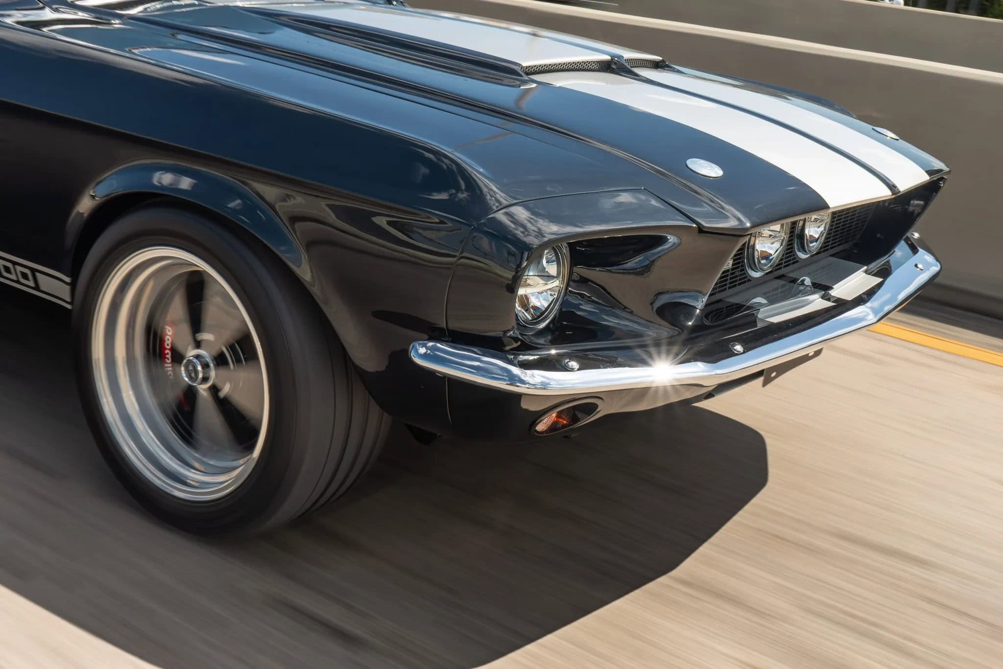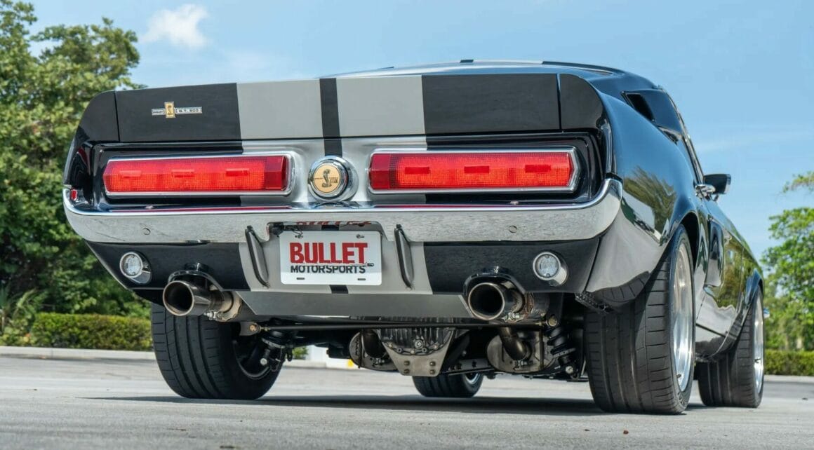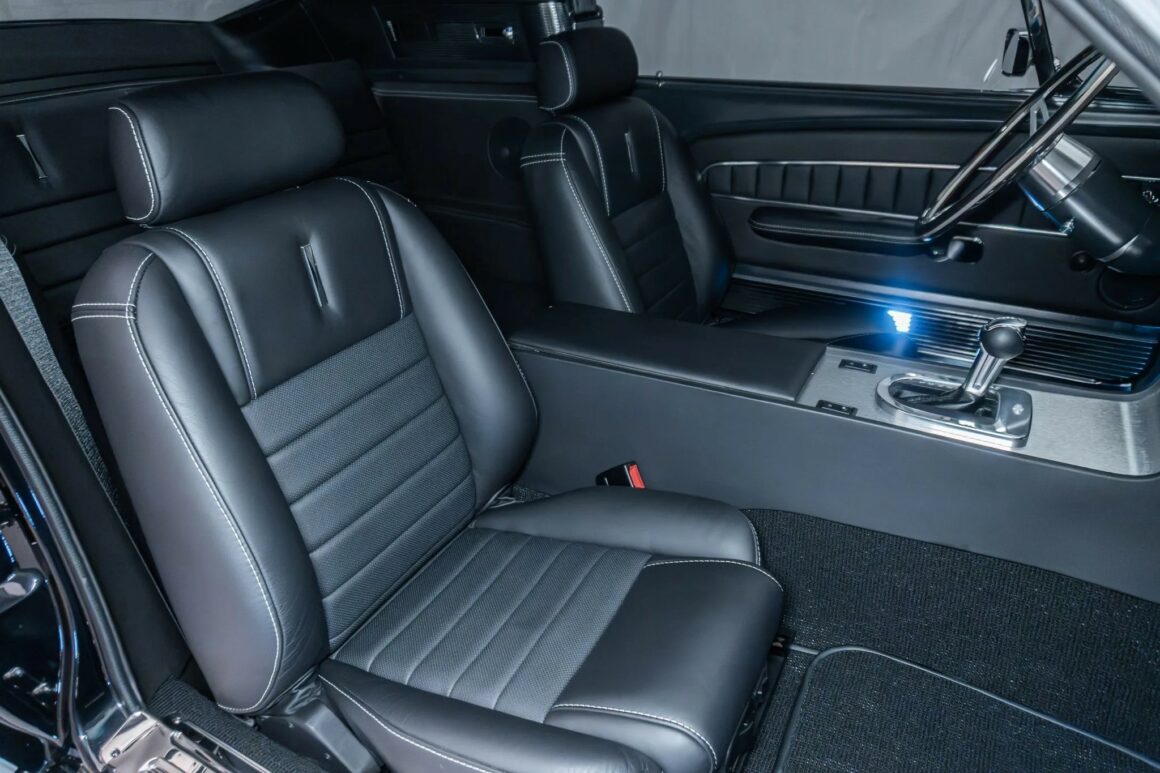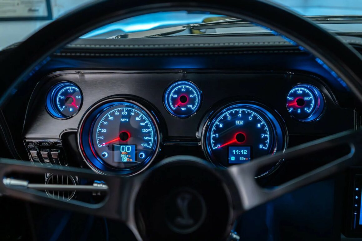 Le châssis monocoque repose sur des combinés filetés réglables, des bras de suspension avant tubulaires Detroit Speed et une suspension arrière à trois bras dont un bras de couple et une tige Panhard. À l’intérieur, les sièges sont recouverts de cuir Nappa noir et les commodités comprennent la climatisation, l’entrée sans clé à distance, le démarrage par bouton-poussoir, une caméra de recul, un système audio JL Audio et des vitres électriques.