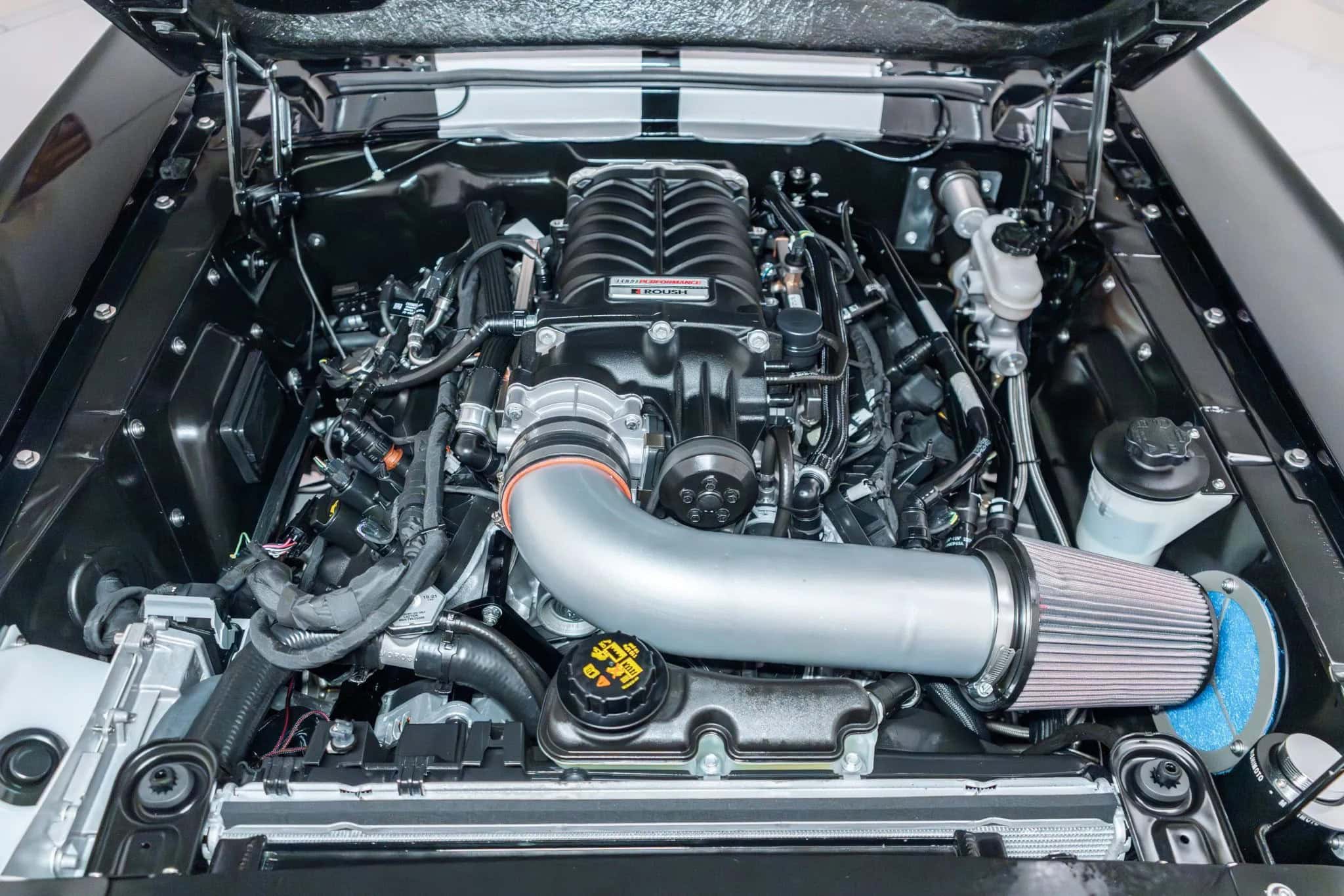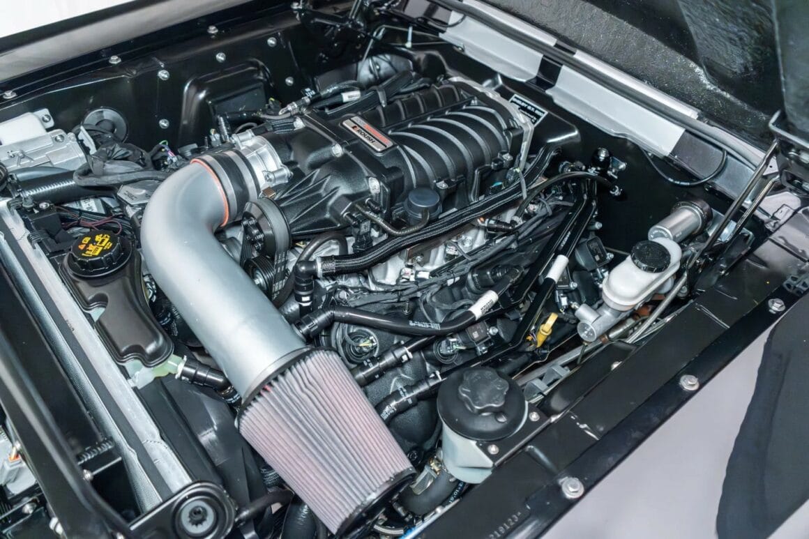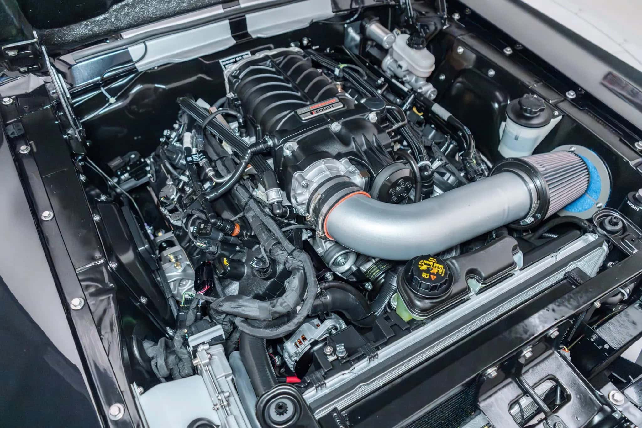 Le V8 Ti-VCT Coyote de 5,0 litres suralimenté est refroidi par intercooler Roush Performance permettant au V8 de développer 710 chevaux et 610 lb-pi de couple le toxique étant évacué par un système d’échappement double de chez Borla Performance. Un refroidisseur d’huile externe Setrab de grande capacité a été installé et le radiateur en aluminium est refroidi par deux ventilateurs électriques. La transmission automatique comporte dix vitesses.