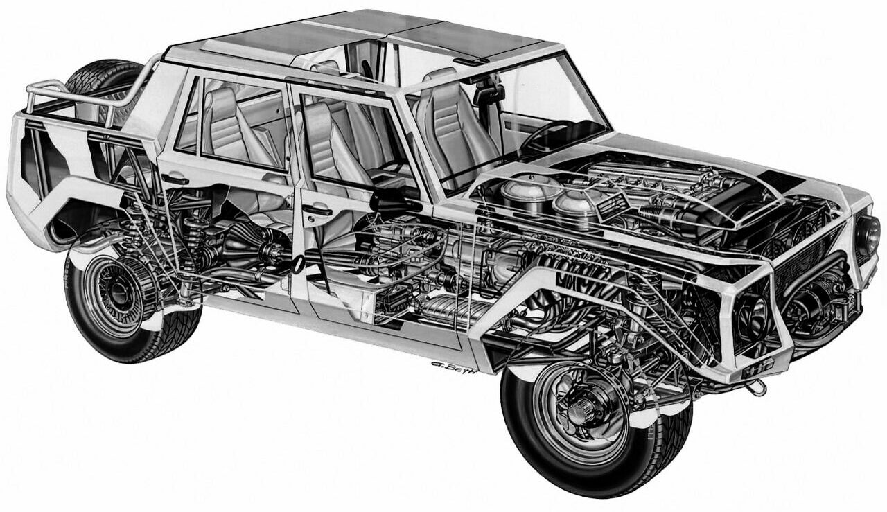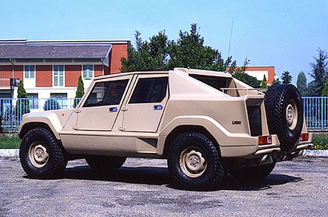 La genèse du LM remonte à l’année 1977, quand Lamborghini, en pleine crise, cherchait de nouveaux débouchés, la marque tenta alors une coopération avec Chrysler et Mobility Technology International pour produire un véhicule tout terrain destiné à l’armée américaine. Baptisé Cheetah, le véhicule 4 x 4 ne passa pas inaperçu ! Look monstrueux, lignes taillées à la serpe, habitacle tubulaire ouvert, le Cheetah n’en affichait pas moins le savoir faire technologique de Lamborghini : moteur arrière (longitudinal), suspension à quatre roues indépendantes et carrosserie en plastique.