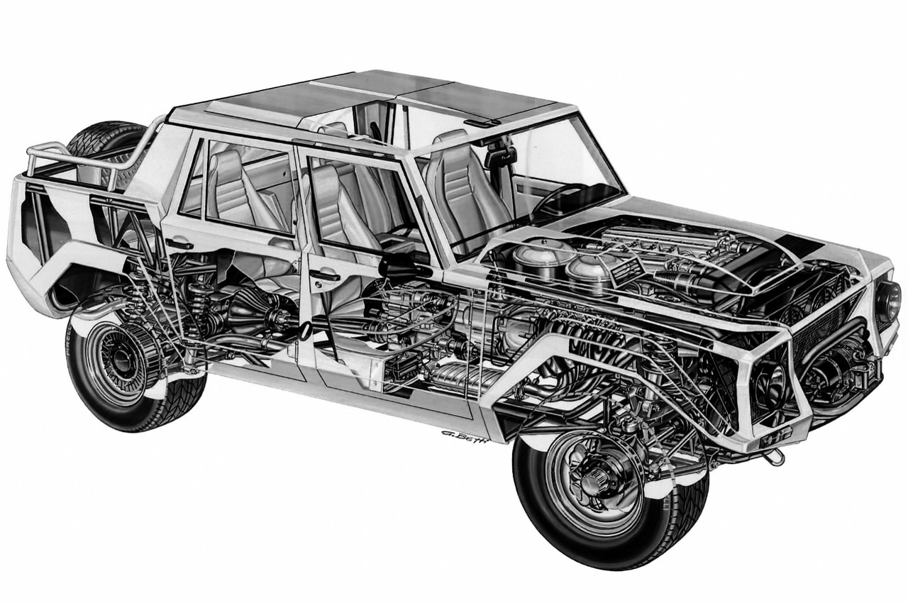 Évolution du Cheetah, le LM 001 conservait un aspect presque identique. Un an plus tard, l’ingénieur Giulio Alfieri, directeur technique de la marque, revint à une disposition conventionnelle du moteur à l’avant. En finale le LM002 sera équipé du V12 de la Countach LP 500. D’un projet militaire, les hommes de Sant-Agata ont fait ainsi une automobile hors normes. Baptisée LMA (Lamborghini Militare Anteriore), la voiture reçu le V12 Lamborghini ramené à 332 chevaux (188 km/h). La transmission était confiée à une ZF avec boîte de transfert, le véhicule n’étant plus un 4 x 4 permanent… et la carrosserie était toujours réalisée en matériau synthétique.