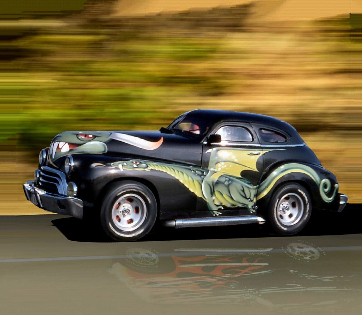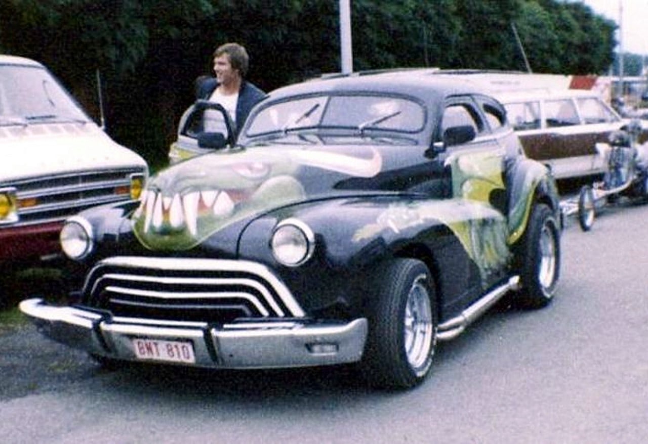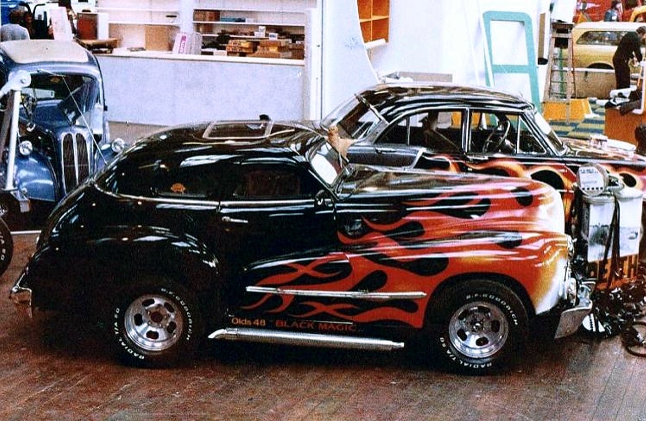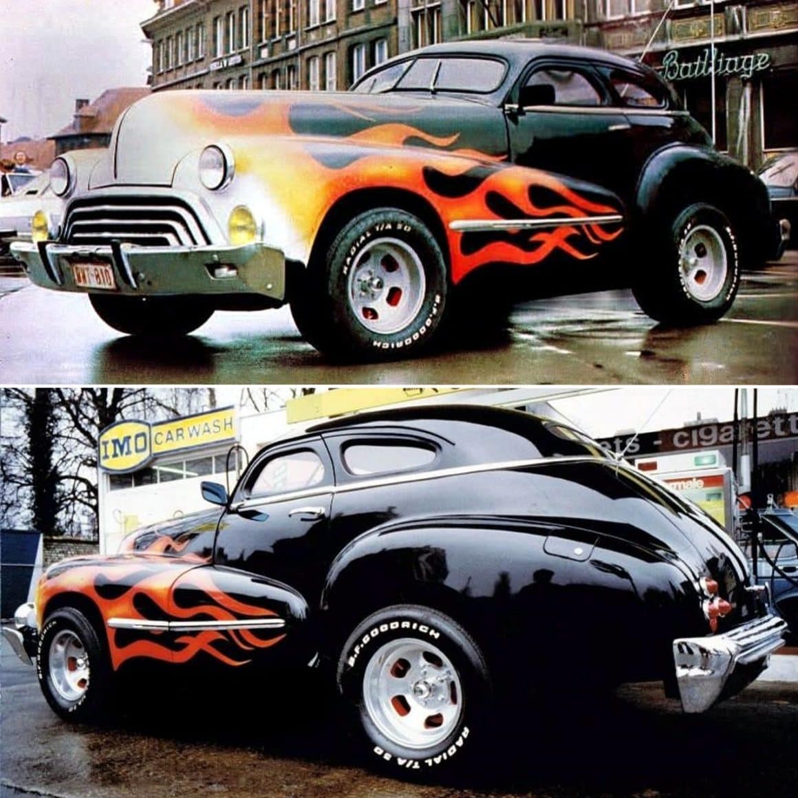 La seconde vie de l’Olds’48 a déjà fait l’objet d’un article (peinture dragon vert), c’est la période qui va de pair avec Chromes&Flammes.