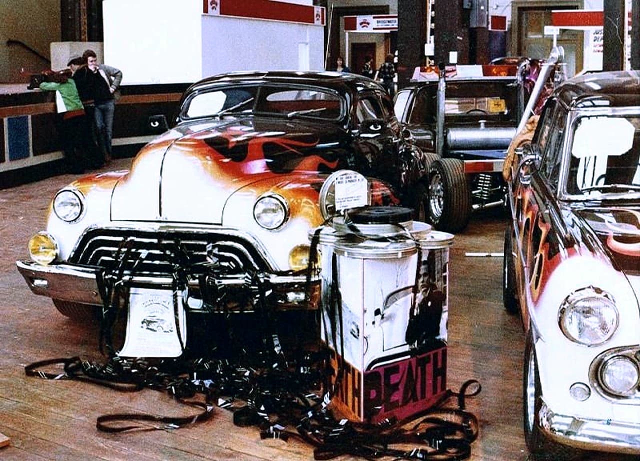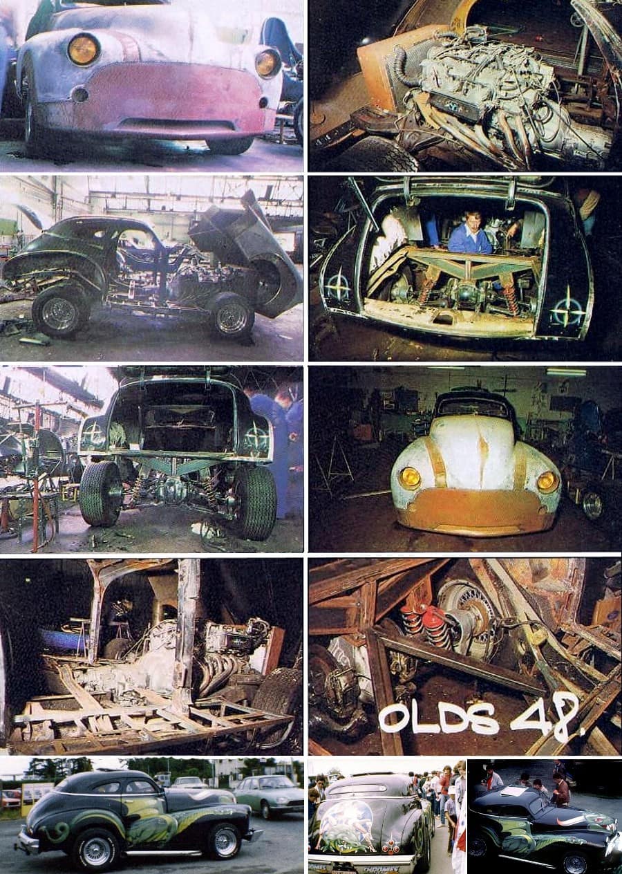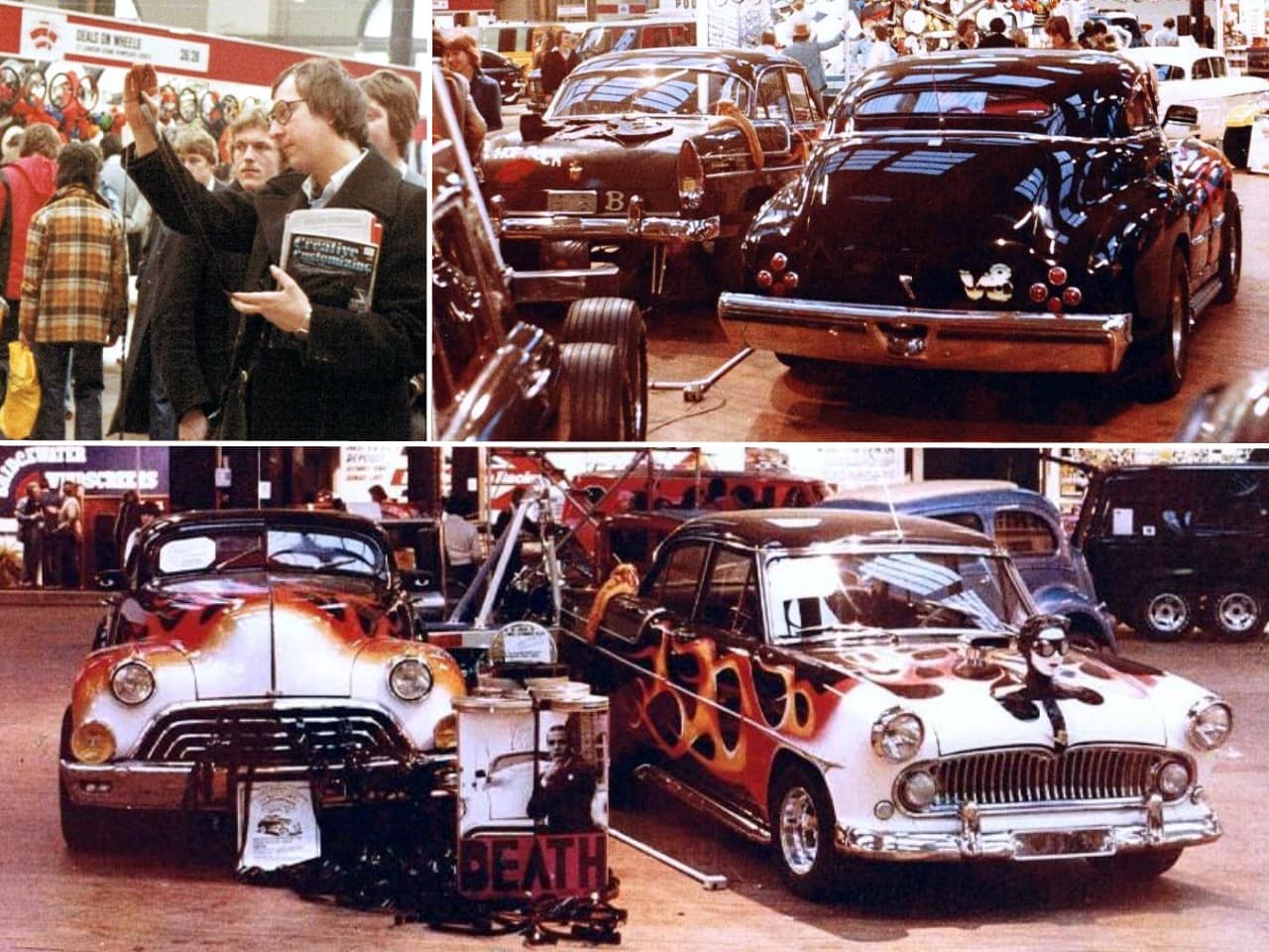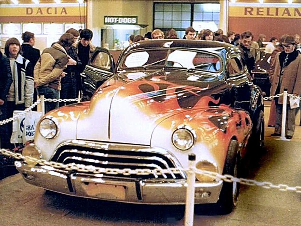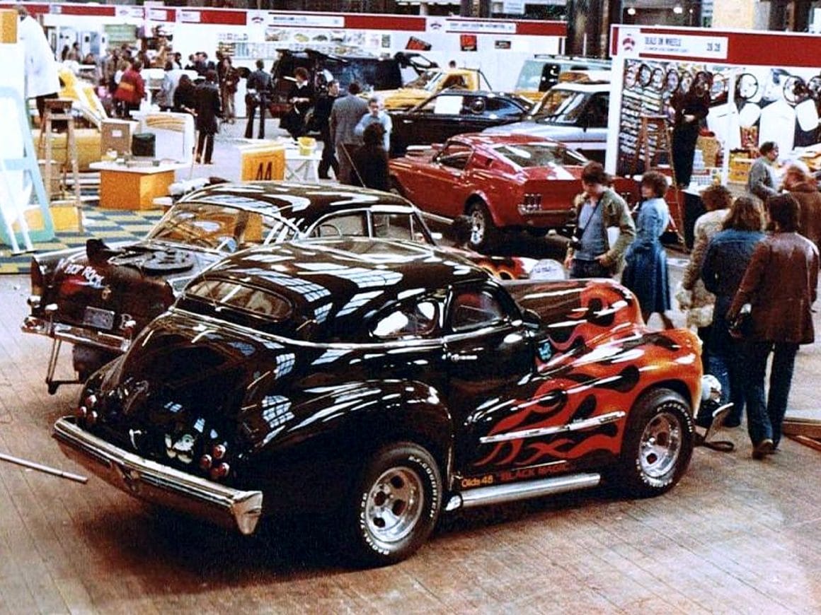 Portés par le vent de la folie, nous sommes allé exposer l’Olds’48 et la Simca Versailles “Hot-Rock” dans le paradis des amateurs du genre en Europe : à Londres, plus précisément au Custom Car show 1979. L’Oldsmobile y fut surnommée “Black-Magic” par les journalistes spécialisés en custom-cars et Hot-Rods… et fit la une de toute la presse Custom britannique, non sans préalablement avoir glané la plus haute récompense du show !