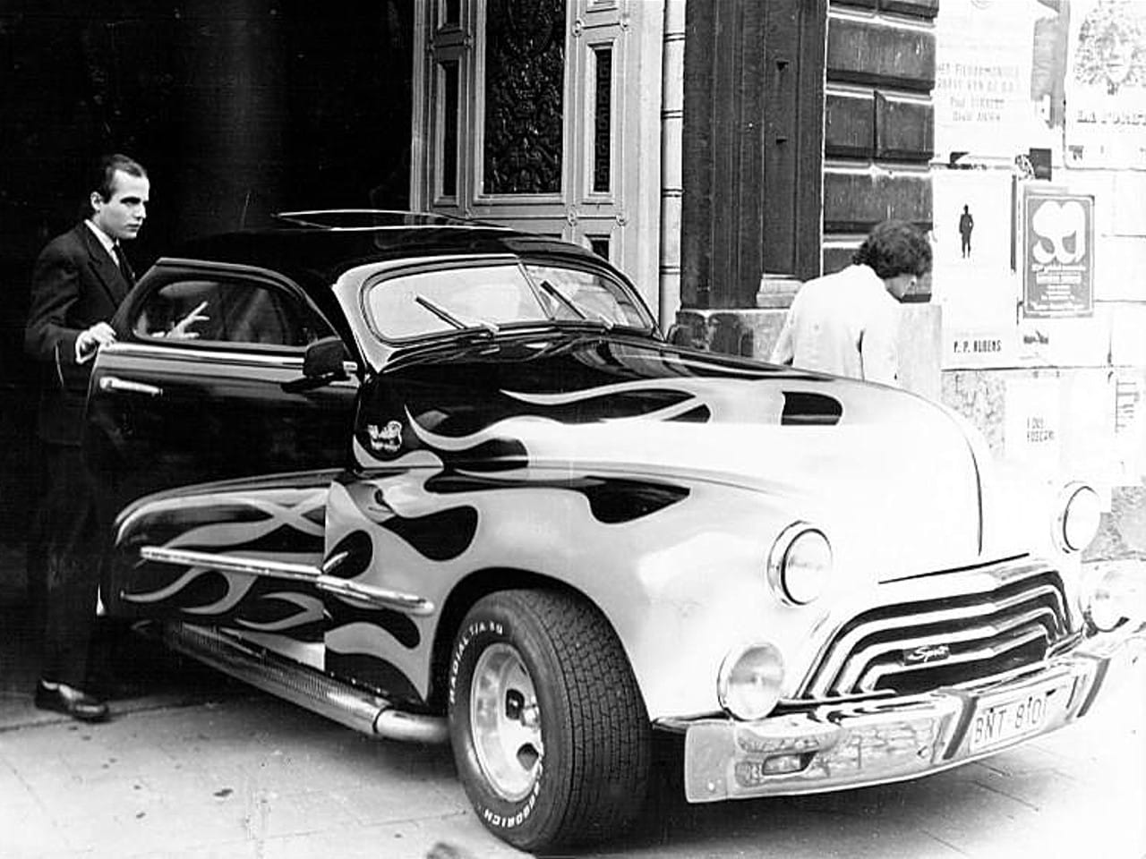 C’est la consécration… Entretemps, l’Olds’48 et la Simca Versailles avec leurs peintures “flammes” sont exposées dans deux Racing-show, dont celui de Bruxelles voit son affiche avec l’Olds’48 dessinée par Jean Graton (le “père” de Michel Vaillant)… Le Hot-Rodding commence à être connu partout en Belgique, en France et en Allemagne… Je deviens multi millionnaire…