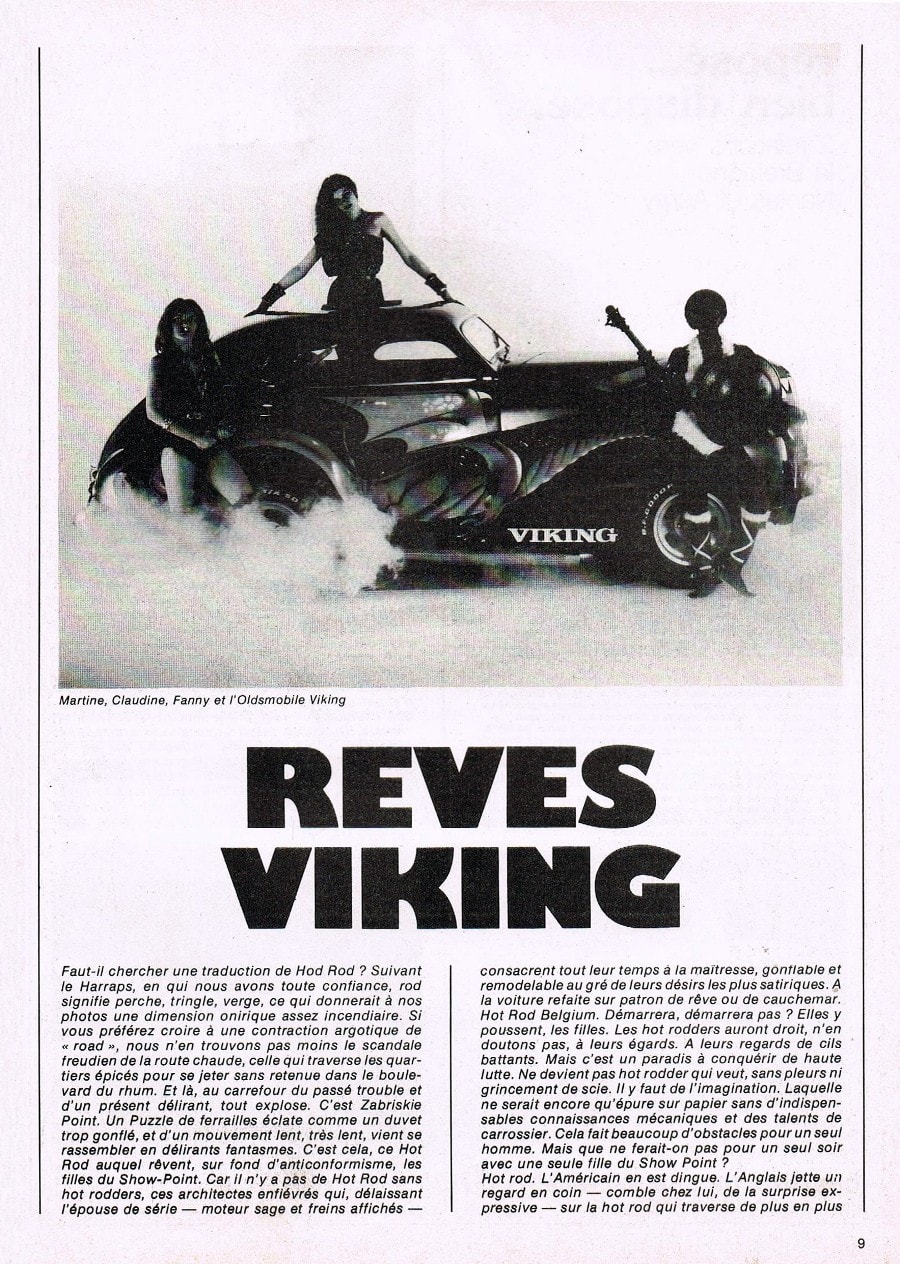 Au plus noir du désarroi, entrecoupé de ma nouvelle amitié avec Jean-loup Nory (grand journaliste français de voitures spéciales malheureusement décédé par overdose de custom et Jack’Daniels quelques années plus tard), qui m’avait ouvert la porte de la France grâce à un article élogieux dans le magazine “Auto-Journal”, j’ai eu l’idée de concevoir la publicité de la nouvelle cigarette “Viking” autour et alentours du Hot-Rodding… et de mes voitures ! Voilà, ce furent de grands moments… Et c’est la fin de la première partie de l’histoire qui va m’amener à créer les mag’s Chromes&Flammes !