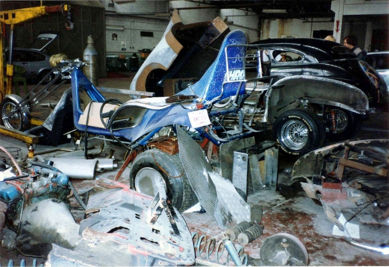 J’en reviens au moment ou j’ai été viré et ai récupéré les Hot-Rod’s… Bien… Cool… Je rencontre Philippe DeBarles ainsi que son acolyte Gilles Gaignaut… qui m’invitent à discuter au resto de l’Armée du Salut à Paris, tellement ils sont fauchés… et, avec partie de mes indemnités de rupture de contrat chez N.C.K., on monte la première course de Dragster en France sur le célèbre circuit des 24 heures du Mans.