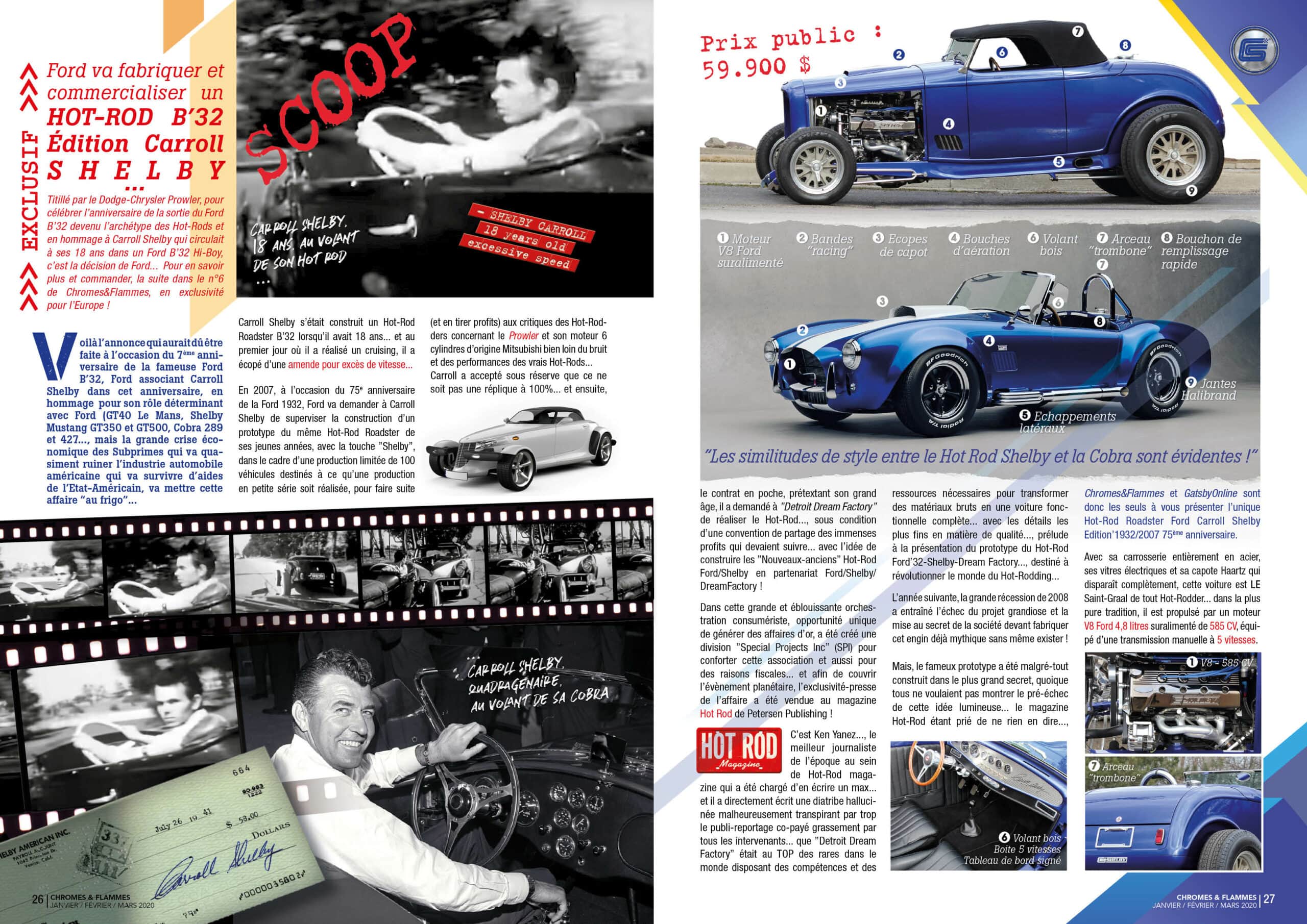 Le magazine Hot-Rod fut prié de ne rien en dire… Chromes&Flammes magazine N°6 du premier trimestre 2020 et GatsbyOnline numérique, ont donc été les seuls à présenter ce Hot-Rod Roadster Ford & Carroll Shelby Edition’1932/2007 “75ième anniversaire”… Il a été vendu 185.000 US$ par Mecum Auction.