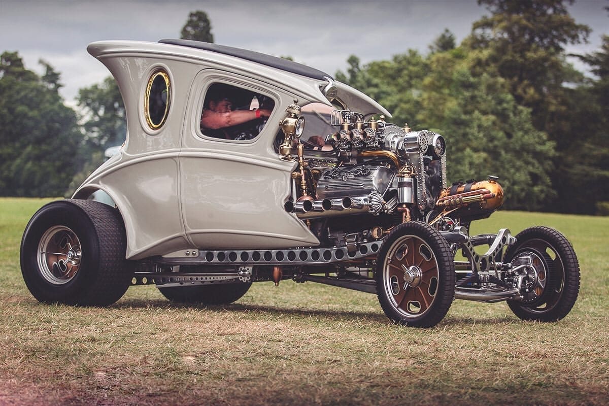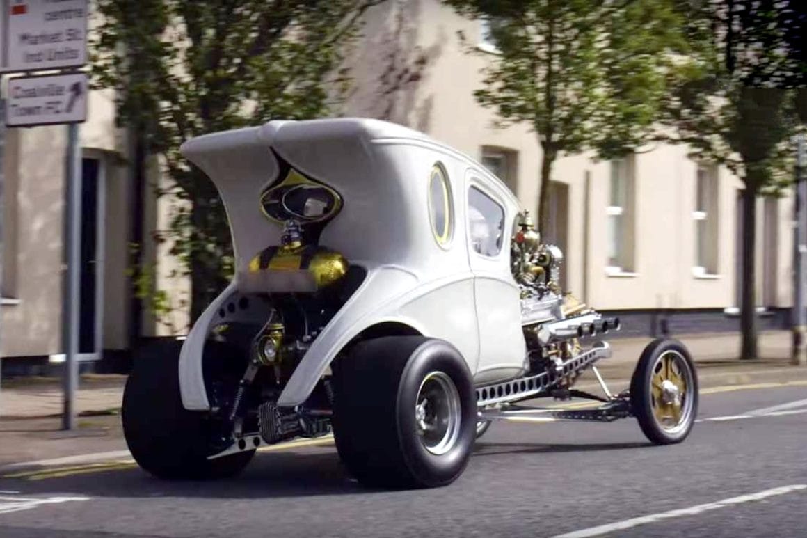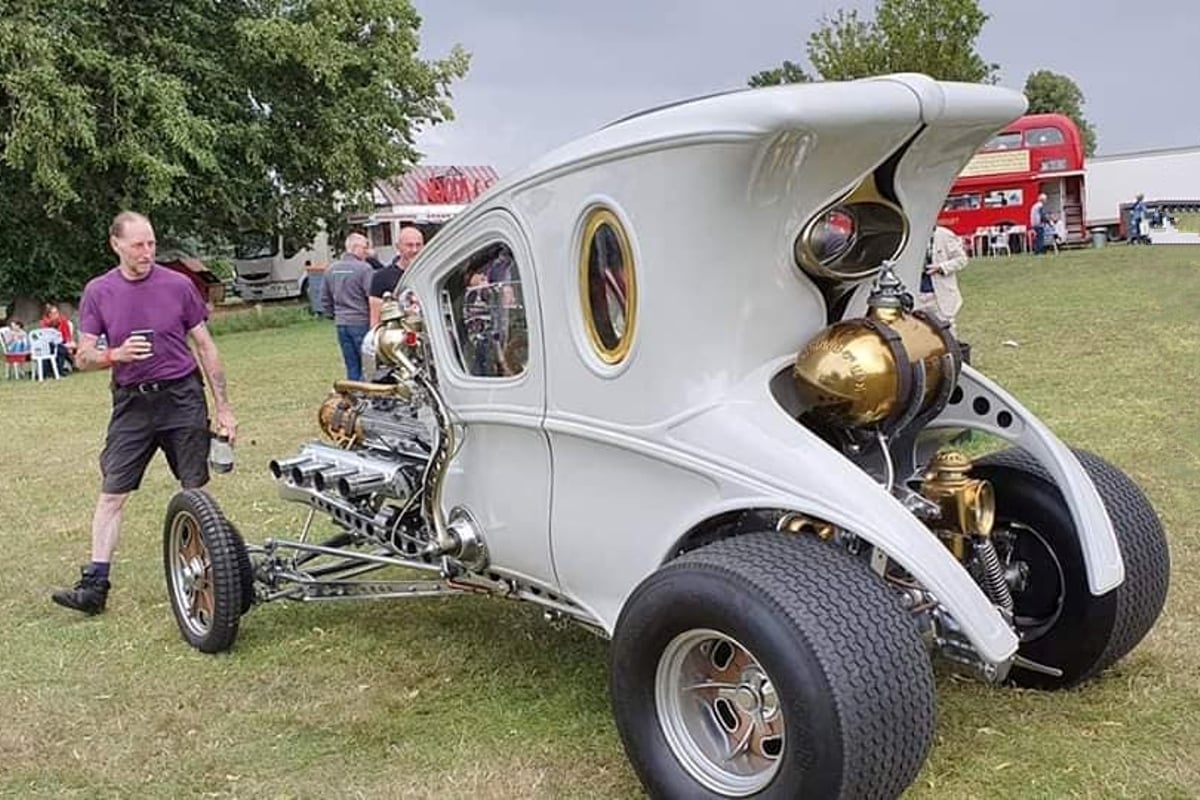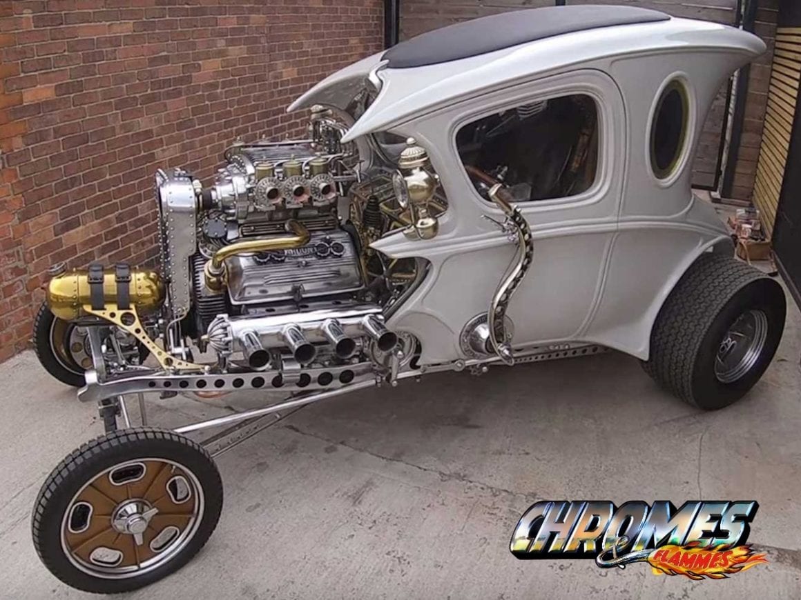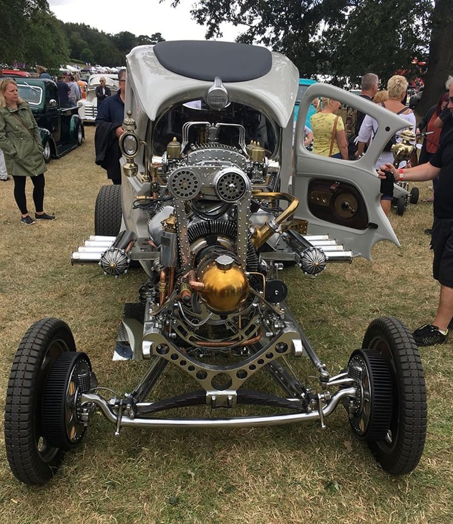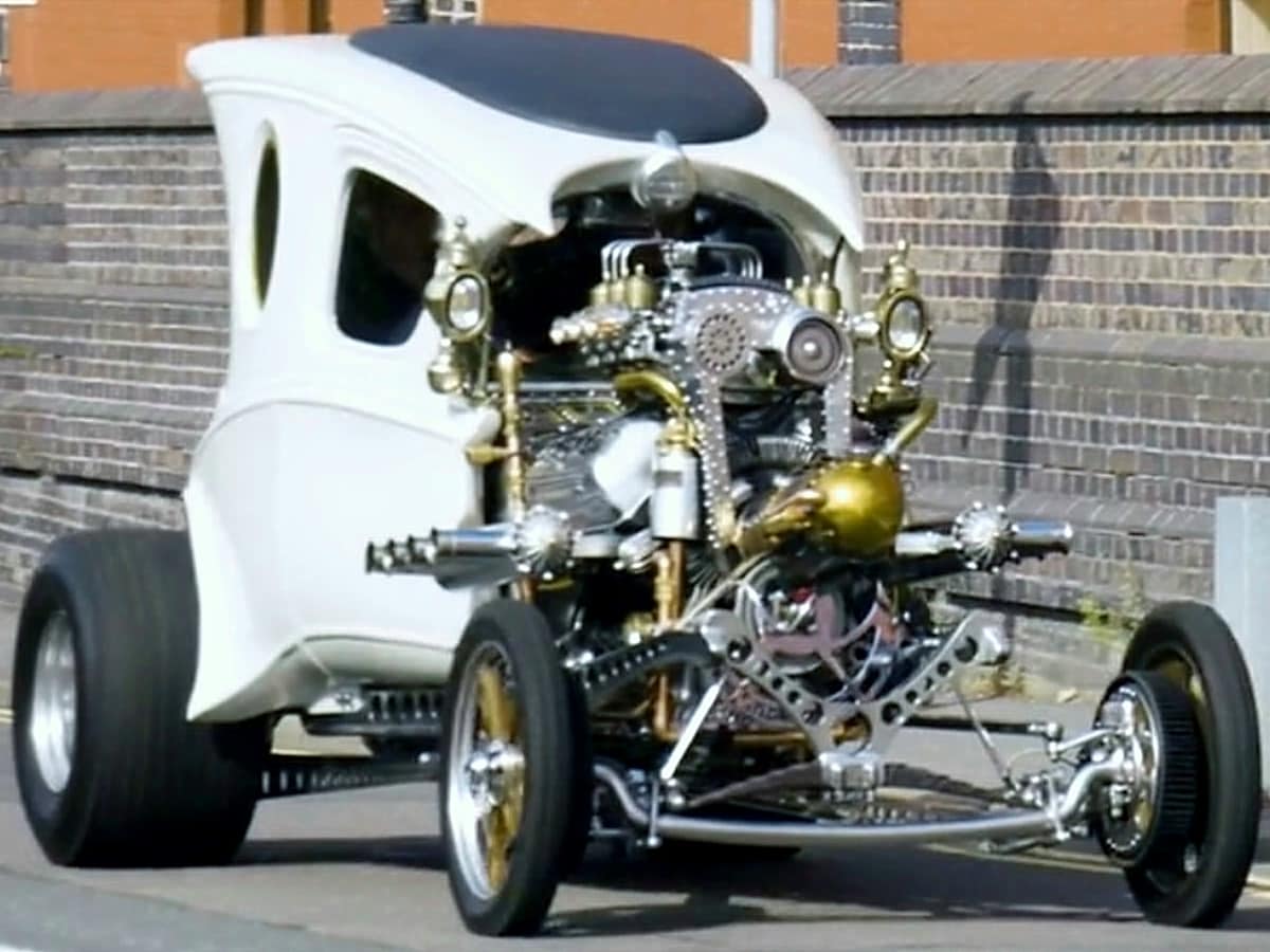 C’est un Hot-Rod qui n’est pas issu des mouvances connues, telles “Street-Rod”, mais du “SteamPunk”, il est équipé d’un V8 suralimenté et utilise “un engin de commutation” issu d’un bombardier Lancaster pour démarrer, les roues avant proviennent d’une Austin-7 et il a utilisé les plus grands pneus de rue légaux au Royaume-Uni d’Angleterre pour les roues arrière…, aucune dépense épargnée : ce véhicule est la création la plus couteuse entreprise par Paul Bacon…